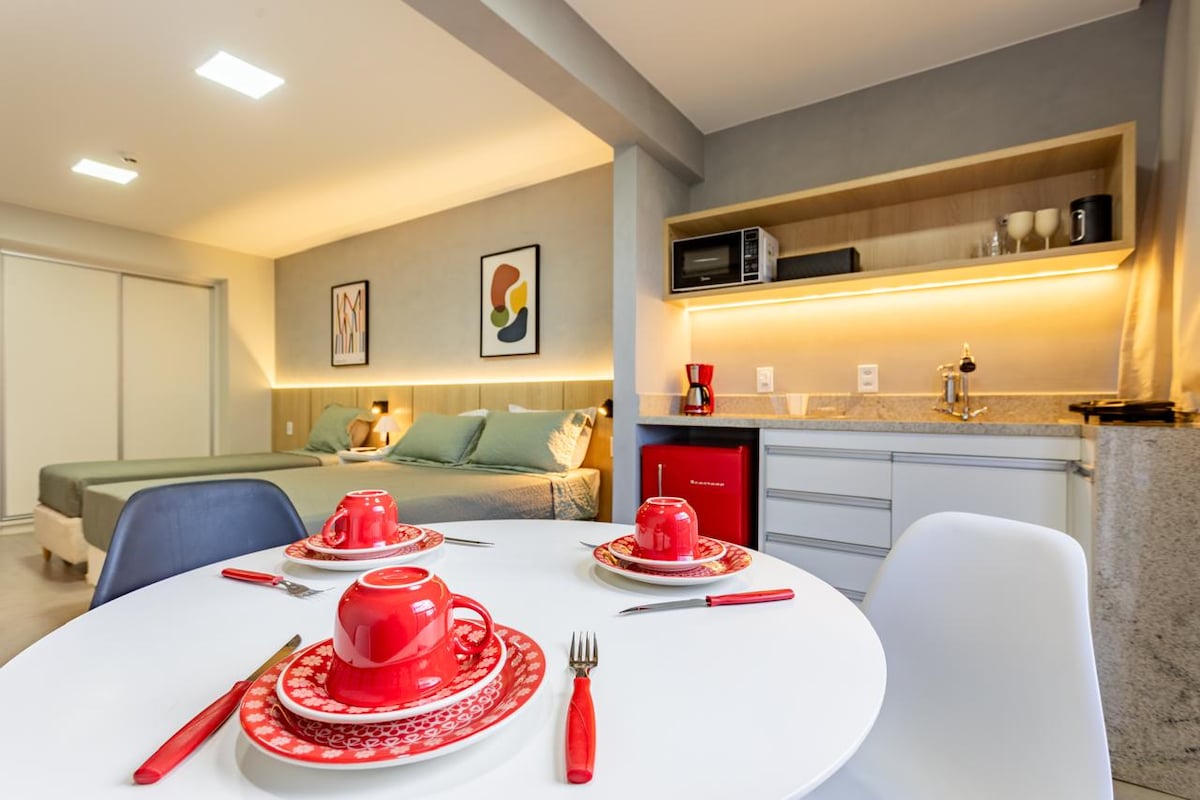 Acogedor apartamento en el suroeste, una región muy encantadora de Brasilia. Frente al bosque, el espacio fue diseñado para tu comodidad y tranquilidad. A solo unos pasos de mercados, gimnasios y restaurantes, y cerca del estadio y el centro de convenciones. Encontrarás: Cama 🔺doble con colchón cómodo Televisor 🔺inteligente de 43 pulgadas y canales abiertos. Aire acondicionado split🔺 LG 🔺 Ropa de cama y baño y almohadas suaves 🔺 Cocina completa y lavadora y secadora. Cafeteras Nespresso y🔺 eléctricas