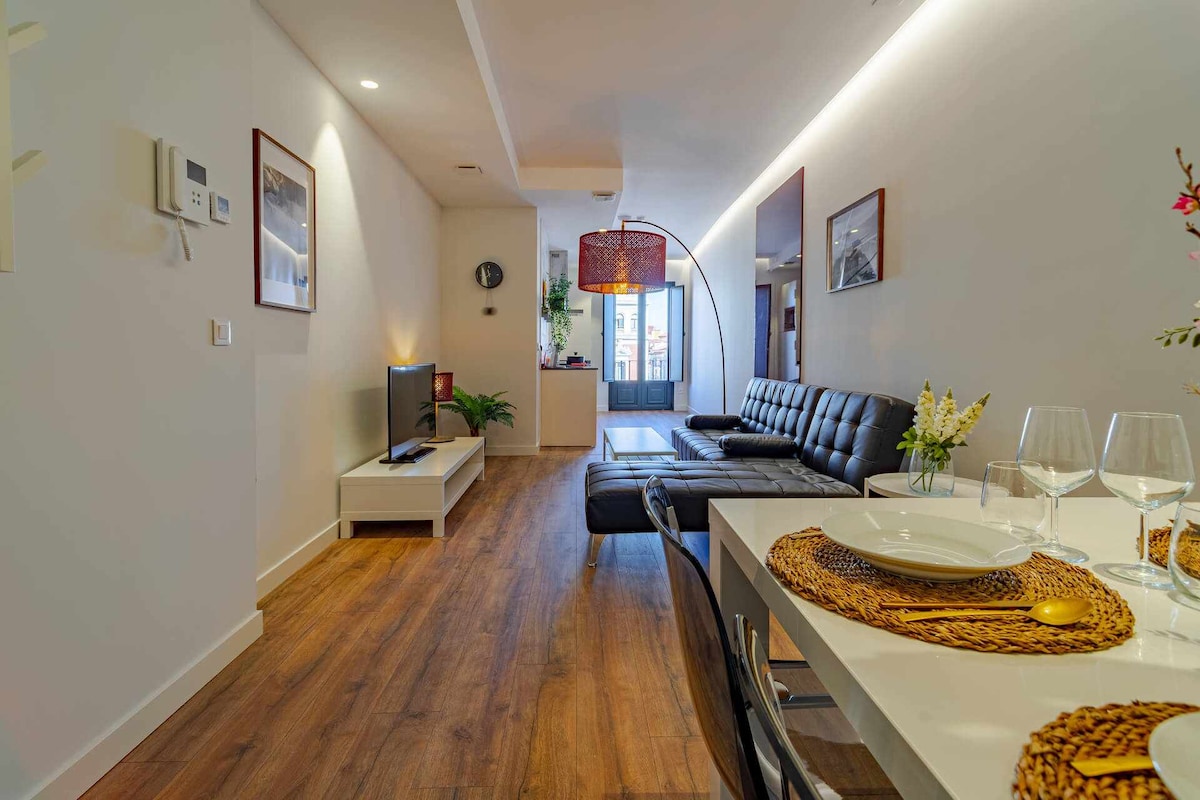 Disfruta de un apartamento de 3 habitaciones (2 con cama matrimonial y 1 con dos camas individuales), ideal para familias o grupos de hasta 6 huéspedes. El salón amplio y luminoso cuenta con dos balcones que inundan de luz natural y vistas a la ciudad. Cocina totalmente equipada (cafetera Nespresso, horno, menaje completo) y dos baños (uno con ducha y otro con bañera) tu comodidad después de un día de turismo o trabajo. Decoración y detalles de diseño hacen de este espacio un lugar perfecto.