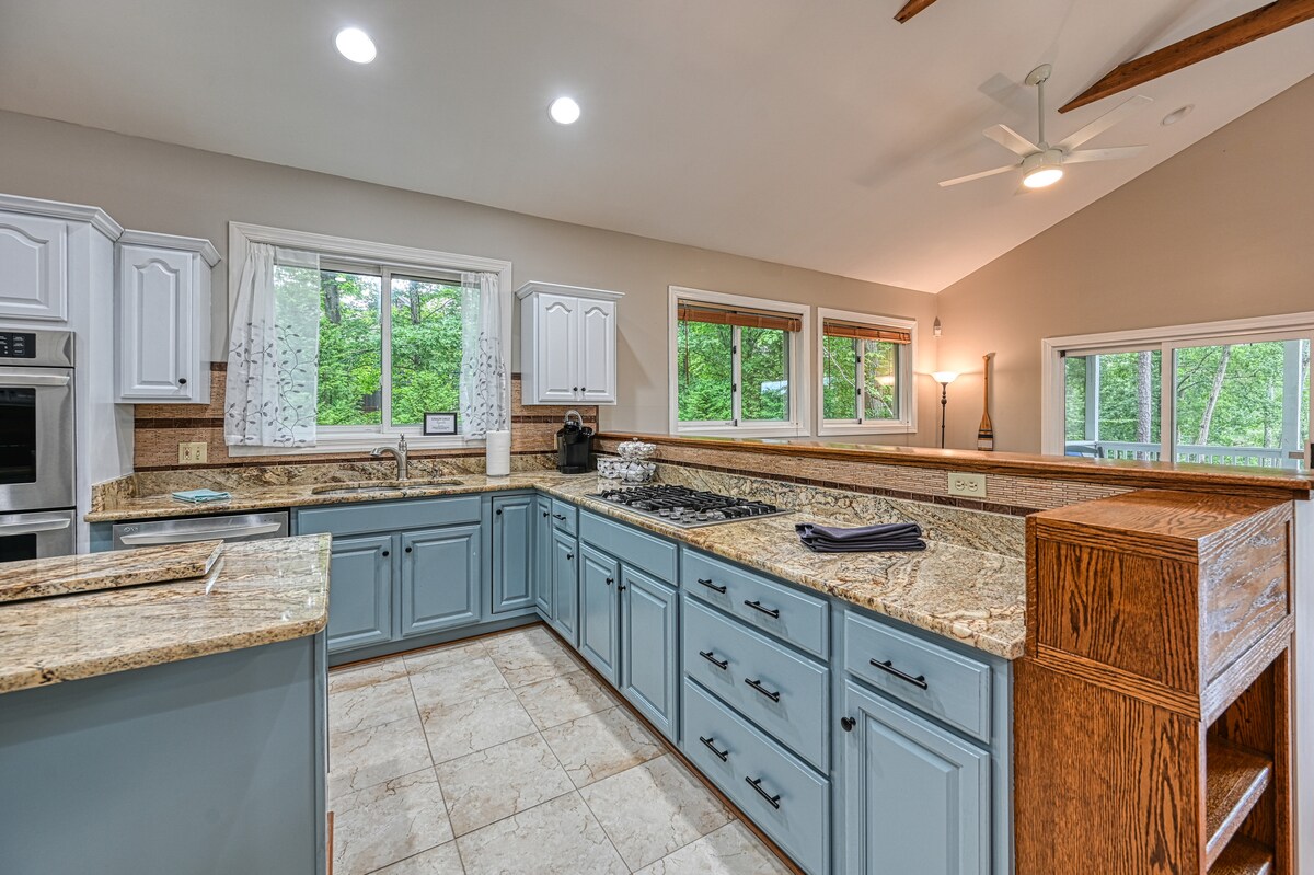 Hermosa casa renovada en casi un acre con un gran patio. En el interior tenemos una cocina equipada y una amplia sala de estar. El garaje se convierte en una sala de juegos con piscina, ping pong, juegos de arcade y mucho más. Al aire libre tiene un patio cubierto, jacuzzi, chimenea, parrilla, hamaca, área de perros vallada y muchos asientos. Este es el refugio perfecto para cualquier persona que desee menos ruido, más naturaleza, ambiente de pueblo pequeño, deportes acuáticos y vida en el lago.