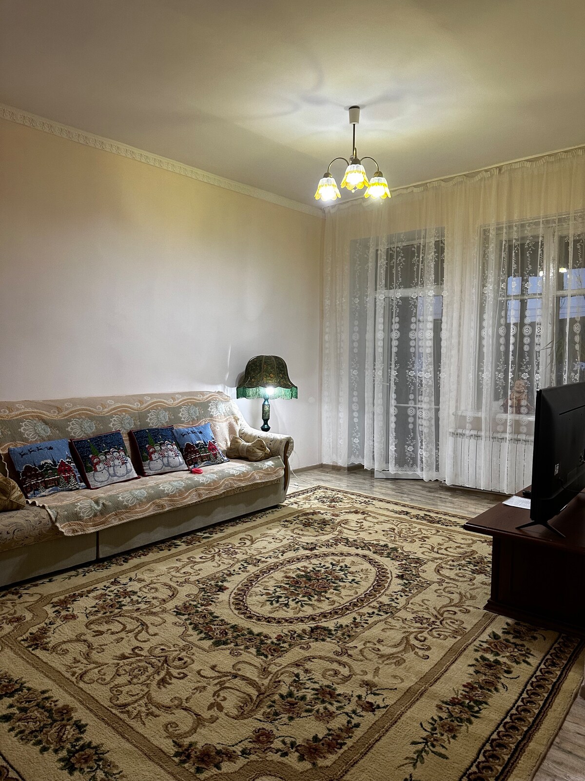 🏠 Acogedor apartamento de 2 habitaciones en el centro Un apartamento luminoso y acogedor con nueva renovación en el centro de la ciudad. Es limpio, hermoso. Perfecto para unas vacaciones, un viaje de negocios o un viaje familiar. Un dormitorio con una cómoda cama matrimonial Sala de estar con sofá plegable Televisión inteligente con YouTube y Netflix Aire acondicionado Wifi de alta velocidad Lavarropas Una cocina totalmente equipada: nevera, estufa, hervidor, platos A poca distancia hay un parque, bancos, oficina de impuestos, centro de servicio público, salones de belleza, odontología, supermercados y un centro comercial.