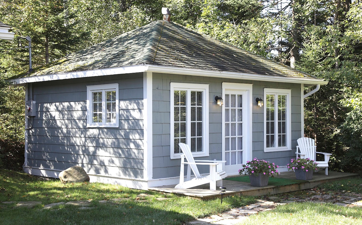 Cabaña estudio privada de la década de 1920 · Refugio romántico para parejas · Capacidad para 2 personas • Cama California King con calefacción · Bañera con patas y ducha · Cocina completa • Patio vallado · Porche con sillas y tumbonas ADK · Wifi · Estacionamiento • A 10 minutos a pie de Main Street · A 2 minutos en auto de Mirror Lake • Mencionada en Country Living, Domino's y en el programa de HGTV Small Space, Big Style Se admiten mascotas · $25 por noche por mascota 🐾 (Por favor, infórmame)