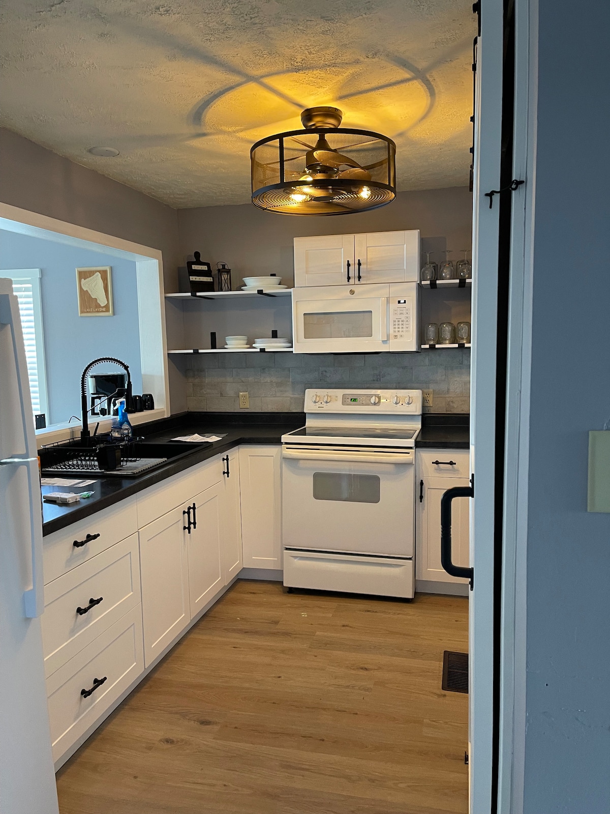¡Te damos la bienvenida a tu escapada tranquila! Deléitate con el encanto de nuestro refugio rural, que ofrece impresionantes vistas al lago. Relájate en el amplio porche cerrado y disfruta del aire libre sin molestos insectos. El acogedor dormitorio, el comedor y la sala de estar cuentan con impresionantes vistas al lago. Disfruta del baño con una lujosa bañera de inmersión y ducha de vapor. La cocina, equipada con electrodomésticos nuevos, hace que cocinar sea muy fácil. Desde la sala de estar, sube a la cubierta y sumérgete en el sereno entorno.