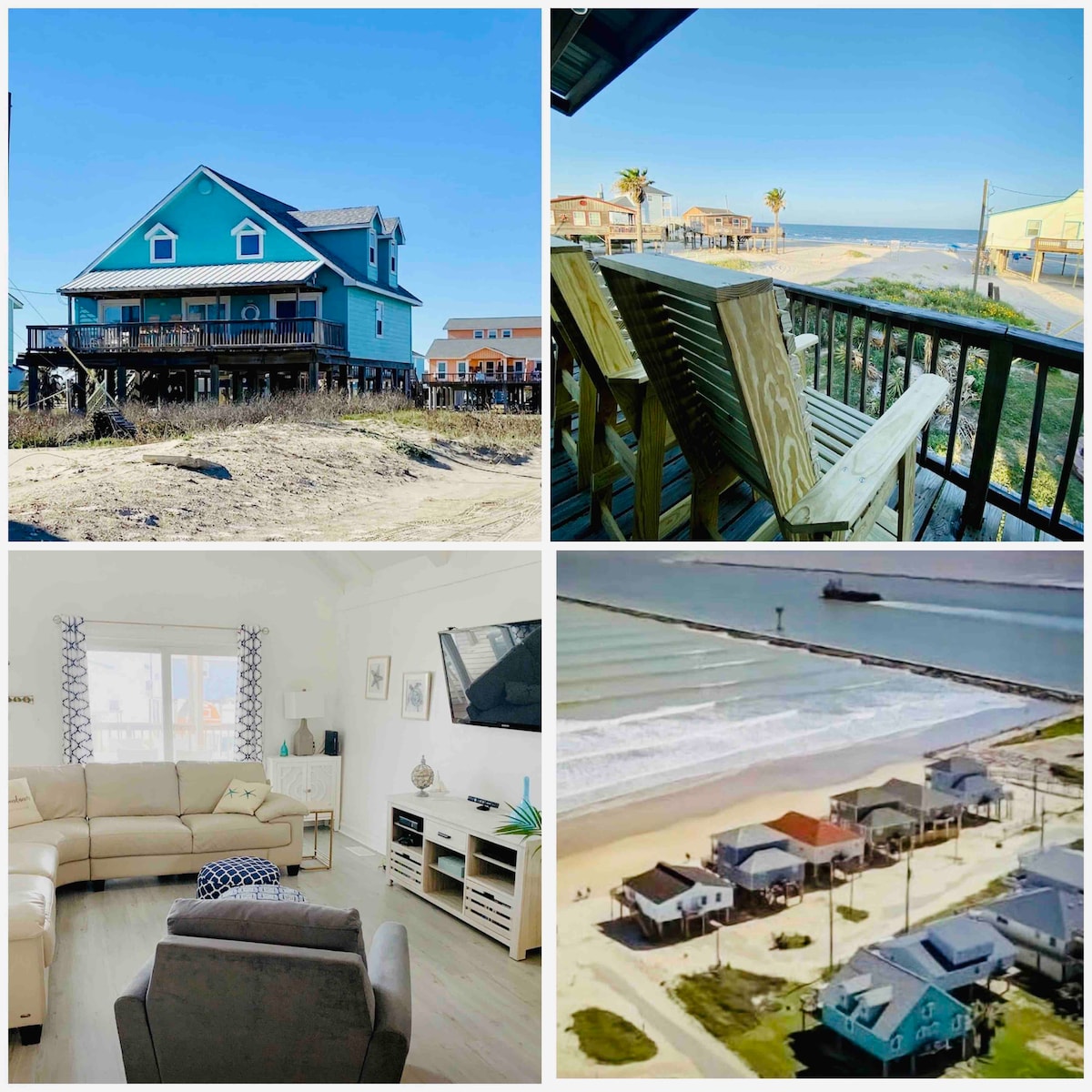 ¡NUEVA construcción frente a la playa! ¡Verdaderamente un unicornio:🦄 UBICACIÓN, LUJO y tan agradable tenerlo NUEVO! ¡Ubicado a pocos pasos de los mejores restaurantes y playa en Surfside! Disfruta de hamacas y juegos debajo de la casa. ¡Sube los escalones hasta una impresionante terraza sombreada con vistas desde San Luis Pass hasta el embarcadero! Vistas despejadas de 180 grados. Dormitorios abiertos a SunDeck y observación de estrellas con 🔥 fogata YouTube Beachfront Luxe para video ¡Tarifa de limpieza de $ 125 y solo $ 75 en total para un máximo de 2 mascotas para toda la estancia!