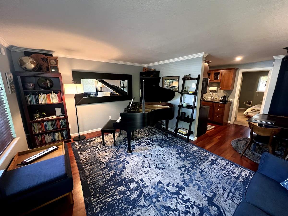 Te damos la bienvenida a tu retiro creativo en el corazón del vibrante barrio de Buckman de Portland. Este apartamento está diseñado para amantes de la música, artistas y aquellos que buscan un lugar inspirador para relajarse entre espectáculos y sesiones. En el corazón del espacio hay un impresionante piano de cola para bebés, elegante y listo para tocar. Tanto si eres un músico de gira, un entusiasta de la música o simplemente alguien que aprecia el ambiente, este espacio es para los huéspedes que respetan tanto el instrumento como la energía que aporta a la habitación.