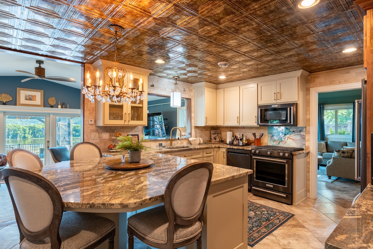 Castle Vüe Villa no es solo un lugar para quedarse, es tu refugio de lujo privado. Ubicada sobre el canal trasero del Mississippi, esta elegante casa fue diseñada para los momentos más memorables de la vida. Ya sea que estés aquí para una boda o una escapada tranquila, te invitamos a que te instales y te quedes un rato. – Capacidad para 8 personas | 4 habitaciones – Perfecto para reuniones – Vistas al río – Cocina del chef – Baños de estilo spa – Diseño elegante y acogedor. – Solárium, fogata y más – Acantilado tranquilo | 10 minutos a Red Wing – Se admiten cachorros
