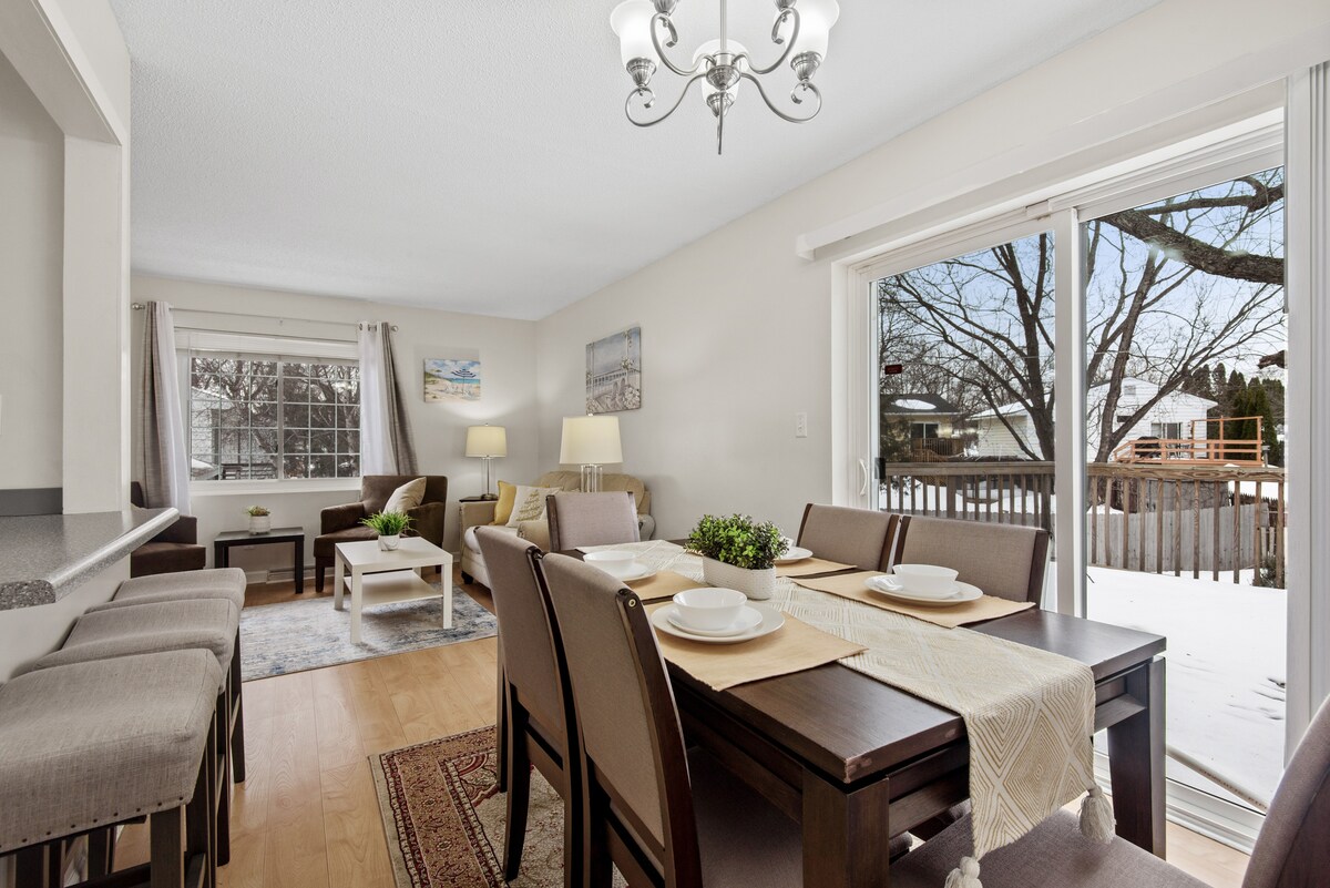 Bienvenido al escondite de Mel, tu hogar lejos de casa cuando visites las Ciudades Gemelas. A pocos minutos de todo lo que las ciudades tienen para ofrecer, pero situado en un barrio tranquilo con su propio patio trasero. Metro Transit está a solo unos pasos de distancia y te lleva a restaurantes de primera clase, entretenimiento y eventos deportivos para una noche de diversión. Una cocina totalmente amueblada junto con una parrilla en tu propio patio privado si prefieres quedarte en casa. Perfecto para una escapada o una estancia prolongada a largo plazo.
