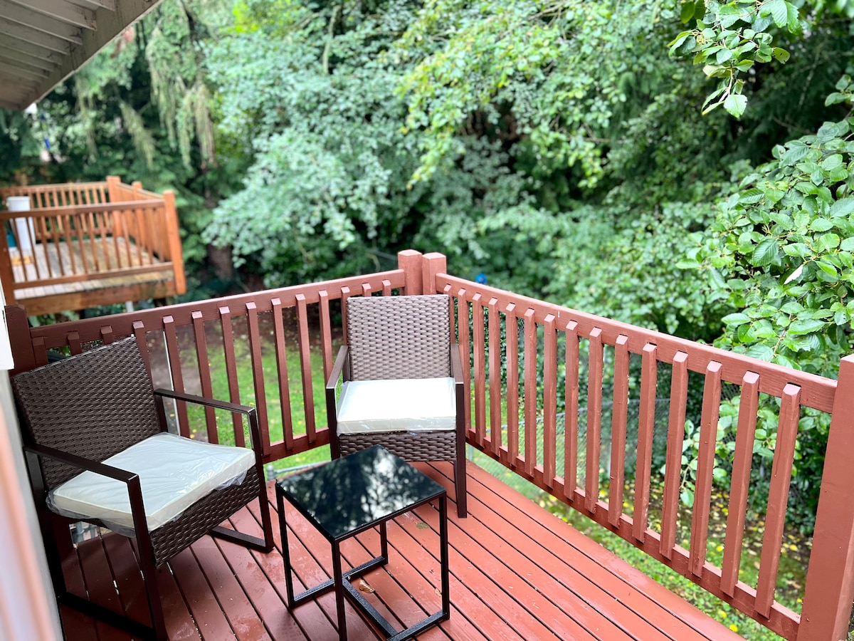 Vuelve a conectar con la naturaleza con esta escapada inolvidable. ¿Buscas una gran experiencia en una casa pequeña? Esta joya está escondida entre las casas de Snohomish/Mill Creek con una sensación boscosa privada. Pasa tu tiempo en la casa cuidadosamente construida y diseñada o afuera en el patio aislado listo para asar y relajarse. Ven a sentir las buenas vibraciones de este lugar. El espacio ofrece una cama tamaño queen, así como un sofá cama para 2 personas en la sala de estar. ¡Recientemente hemos añadido un jacuzzi para que nuestros huéspedes disfruten!