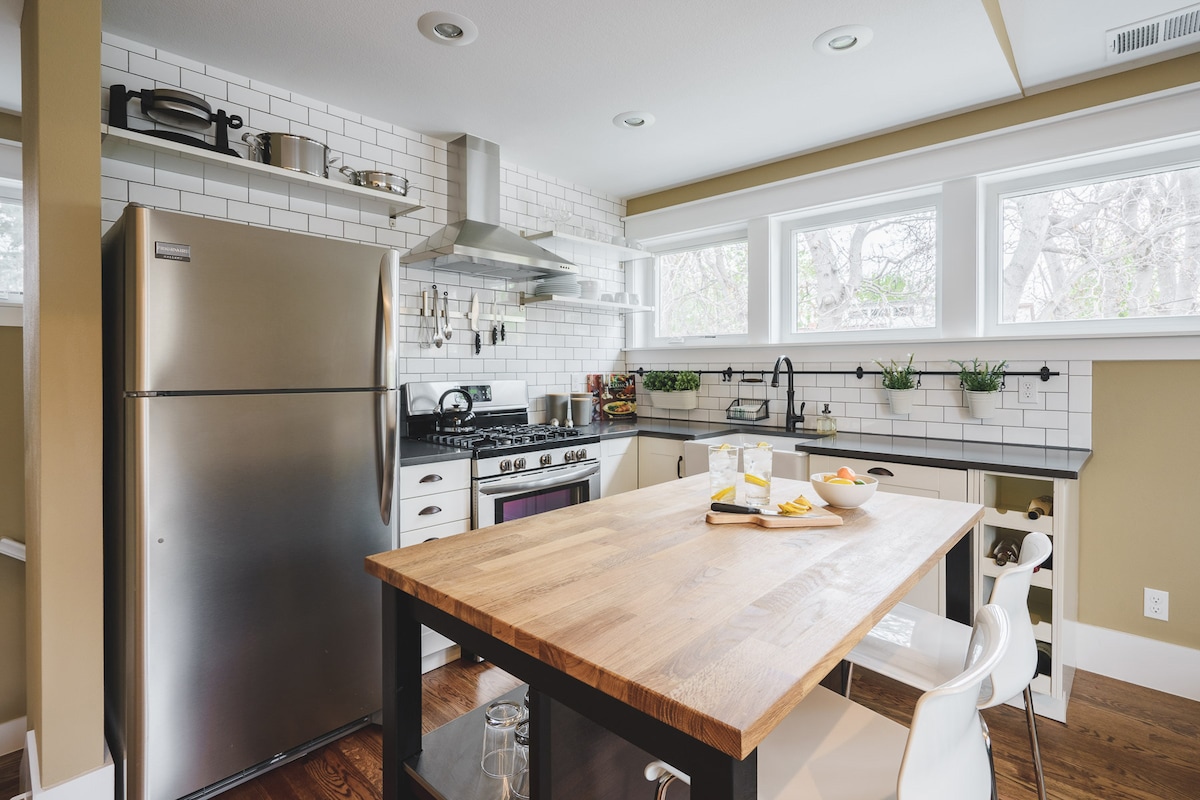 **Ubicación privilegiada en Denver**, nuestra casa de carruajes de más de 600 pies cuadrados en el segundo piso ofrece una escapada serena en medio de las copas de los árboles del norte de Denver. A una manzana del vibrante distrito de negocios de Tennyson Street, esta encantadora casa de huéspedes te coloca a poca distancia a pie de los mejores restaurantes, panaderías, boutiques, cervecerías, parques y tiendas de comestibles de Denver. Nuestra casa de huéspedes de nueva construcción y con prioridad de calidad es un oasis equipado con todo lo que necesitas, a solo 10 minutos del centro de Denver y con fácil acceso a la I-70.