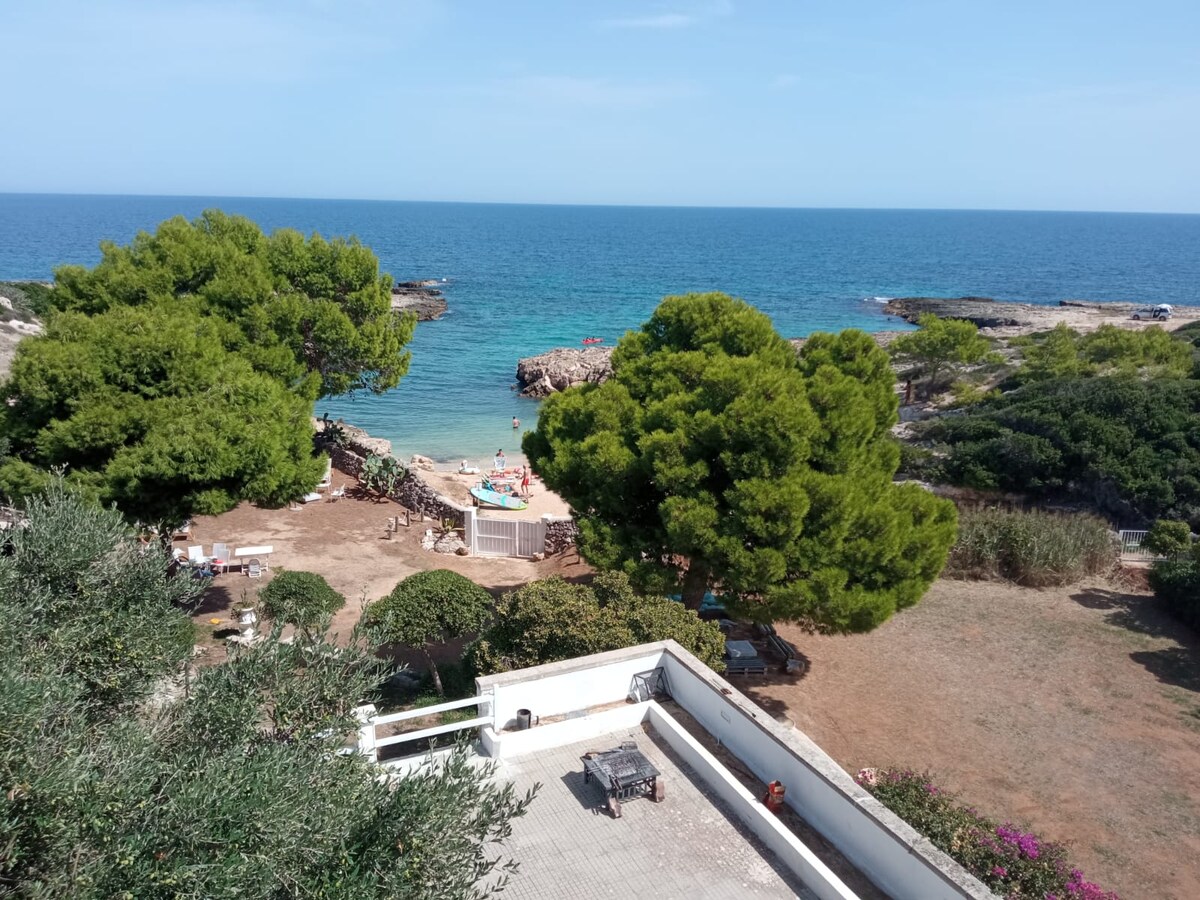 Villa Maestrale se encuentra en un complejo residencial privado, en una posición predominante frente al mar, cerca de la famosa costa arenosa de Capitolo in Monopoli La propiedad puede alojar hasta 10 personas, está completamente cercada y equipada con un portón eléctrico y estacionamiento privado dentro del patio residencial. Al cruzar la puerta, se accede a la zona ajardinada decorada con árboles frutales y plantas aromáticas.