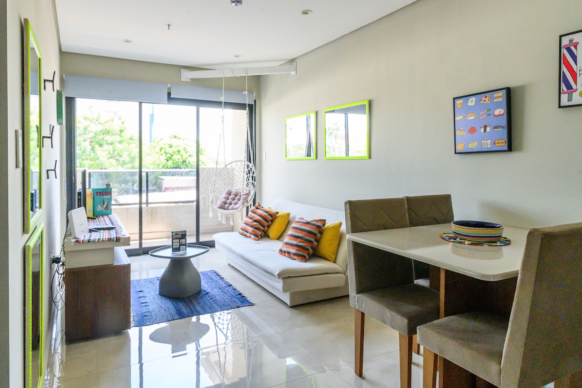 Moderno departamento en el corazón de Asunción, a solo 100 metros de los mejores shoppings, restaurantes y hoteles. Totalmente equipado, ofrece sala de estar luminosa, cocina moderna, dormitorio con cama queen y baño completo. El edificio cuenta con increíbles amenidades: gimnasio, sala de juegos, piscina semiolímpica y estacionamiento privado. Perfecto para quienes buscan comodidad, lujo y una ubicación inmejorable. ¡Reserva y disfruta de Asunción al máximo!