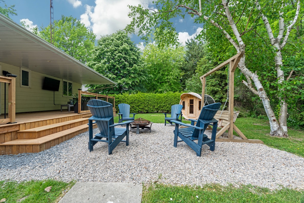 Bienvenido a nuestro pequeño y dulce spa nórdico: ¡un refugio lejos del bullicio! Cabaña de estilo alpino de dos dormitorios abierta todo el año, con sauna, jacuzzi de barril y piscina de agua fría. Disfruta de una estancia relajante en nuestra tranquila casa de campo para tu viaje a Lambton Shores/Grand Bend, Ontario. La unidad está equipada con aire acondicionado, chimenea de gas, wifi, cocina completa, espacio de trabajo y patio para descansar. Nuestra casa de campo está a 15 minutos de la playa de Grand Bend y a menos de 10 minutos de The Pinery. ¡Estamos deseando recibirte!