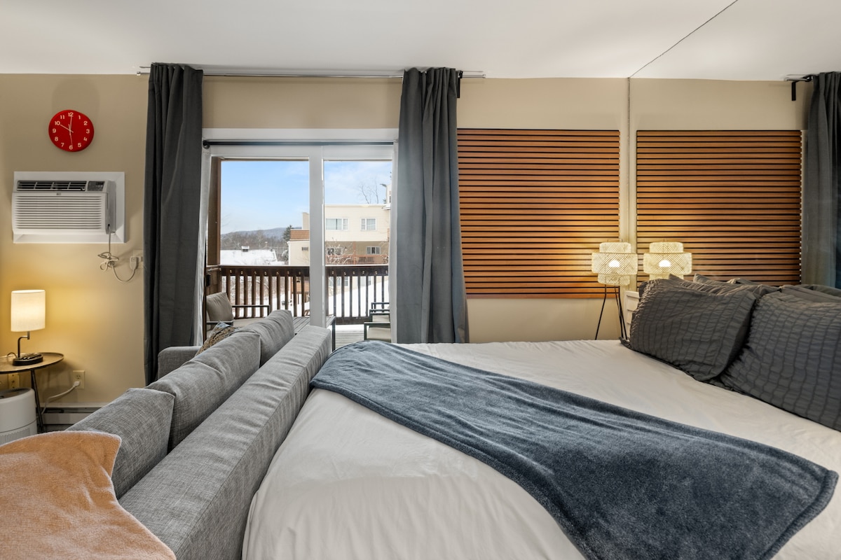 Descubre nuestro hermoso refugio de dos dormitorios y dos baños. A pocos pasos del camino recreativo, la cervecería Alchemist, Piecasso y más, esta joya recientemente renovada cuenta con baños nuevos y una acogedora chimenea interior. Con una cama tamaño queen, dos individuales y un cómodo sofá cama extraíble para garantizar tu comodidad. Las áreas de estar y comedor ofrecen vistas impresionantes y disfrutarás del ambiente mejorado mientras disfrutas de las numerosas comodidades de Stowe.