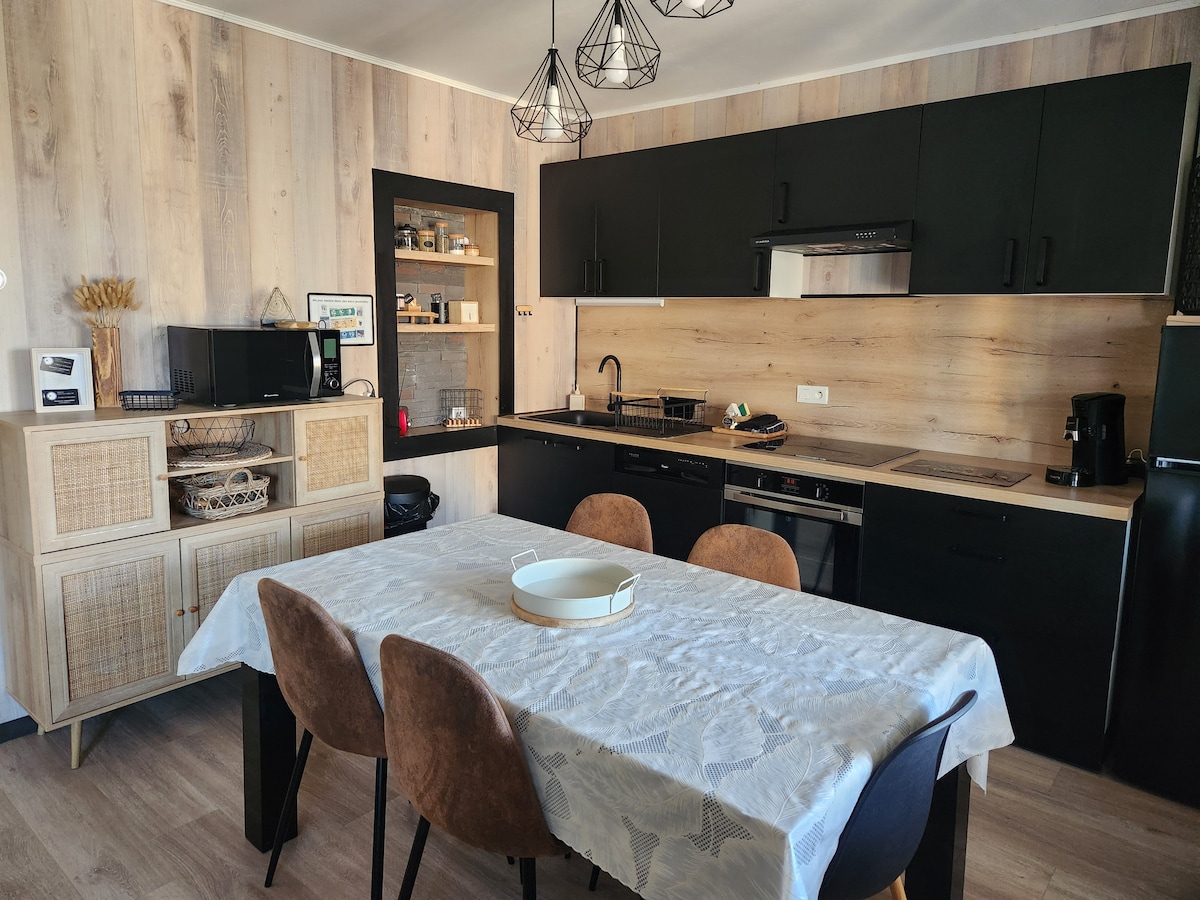 En el corazón de Lanas, encantador pueblecito de Ardèche, venga a descubrir nuestro monoambiente muy "cocoon" y atípico, cerca de Ardèche. El alojamiento es funcional e ideal para 2 personas. 😍 De una sola planta, tiene una entrada independiente a un patio cerrado (útil si tiene bicicletas)... El apartamento consta de una zona de cocina/comedor muy bien equipada y un dormitorio separado, con 1 cama confort (160×200 cm) +1 escritorio pequeño. Se abre a una bonita terraza cubierta... para relajarse🌞😎