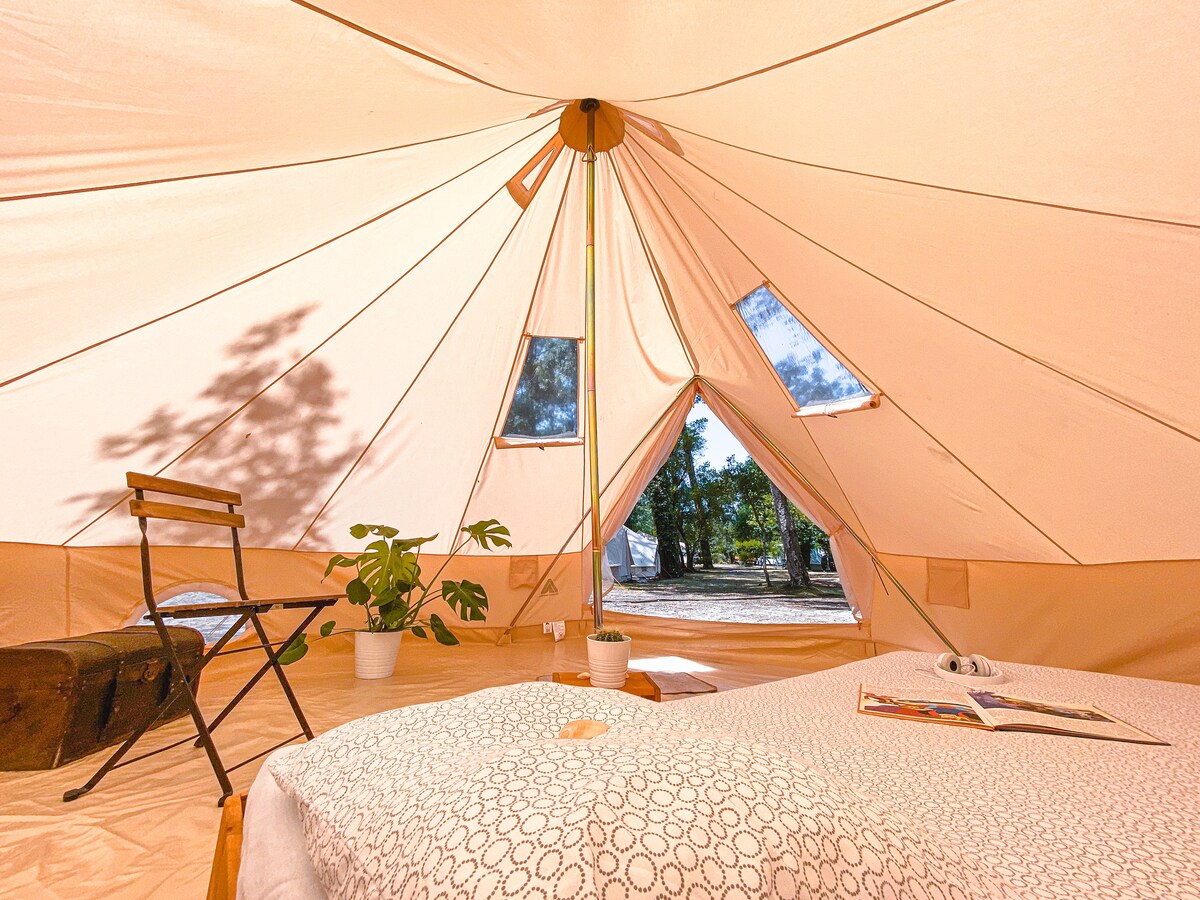 Ubicada en un parque arbolado privado, nuestra tienda lodge ofrece intimidad y serenidad. Descubra este lugar atípico y encantador, para una escapada en familia, con amigos o en pareja y disfrute de noches tranquilas en nuestra tienda espaciosa y confortable. Para el deleite de los niños, descubra el espacio exterior con piscina privada y trampolín. Al caer la noche, sumérgete en un ambiente encantador y romántico a la luz de las linternas y disfruta de las dulces noches bajo el cielo estrellado.