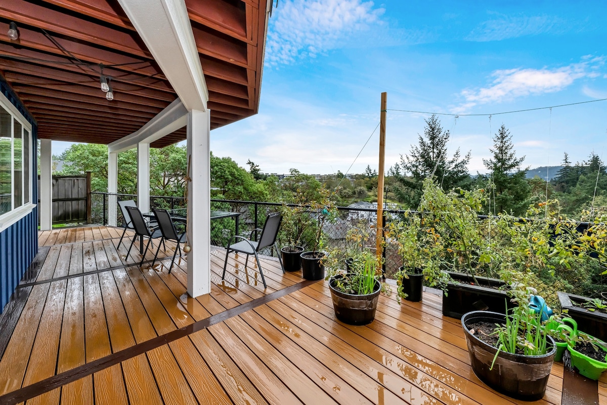 Situada en una meseta de 2 acres cerca de la cima del monte Triangle, nuestra suite con salida a un jardín en la tranquilidad de un bosque, está por encima de tiendas locales, playas, el castillo de Hatley, el lago Thetis y a 30 minutos en coche del centro de Victoria. Ideal para aquellos que quieren un retiro o necesitan una ubicación céntrica en el área metropolitana de Victoria. ¡Perfecto para explorar la costa oeste o la ciudad! Cómoda cama tamaño queen más un sofá cama tamaño queen (American Sleeper). Disfruta de café Nespresso, wifi, Smart-TV, lavandería en suite y barbacoa de cortesía.