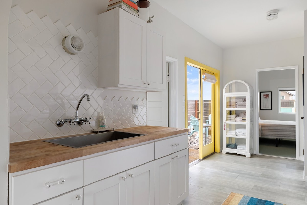Explora, relájate y experimenta el encantador pueblo costero de Langley en la isla de Whidbey. Nuestro moderno apartamento en el centro de Langley cuenta con una mezcla de muebles modernos de mediados de siglo de alta calidad con obras de arte contemporáneo. La habitación principal y la de invitados reflejan camas de la más alta calidad y ropa de cama de lujo. En la sala de estar, acércate a la chimenea o cocina una comida gourmet en nuestra cocina de alta gama totalmente equipada. Junto a la sala de estar hay un balcón privado con vistas a un tranquilo espacio verde.