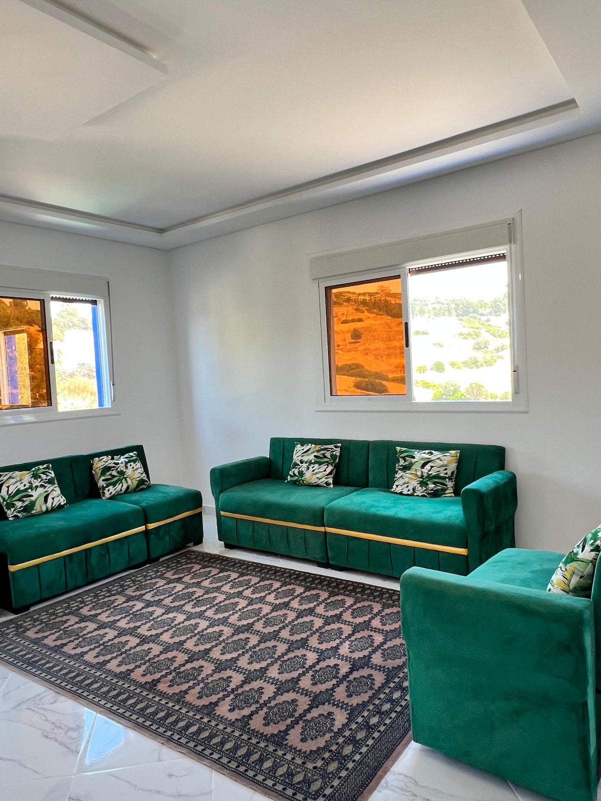 Bienvenidos a mi casa familiar en el tranquilo pueblo de Bni Meslem, a solo 20 minutos a pie de la playa. Ubicado en una ladera con vistas panorámicas al mar, está cerca de la playa de Sidi Mghait y Chez Mounir. Disfruta de caminatas panorámicas, una terraza soleada para el café de la mañana y un espacio luminoso y cómodo con toques modernos, perfecto para relajarse después de un día al aire libre.