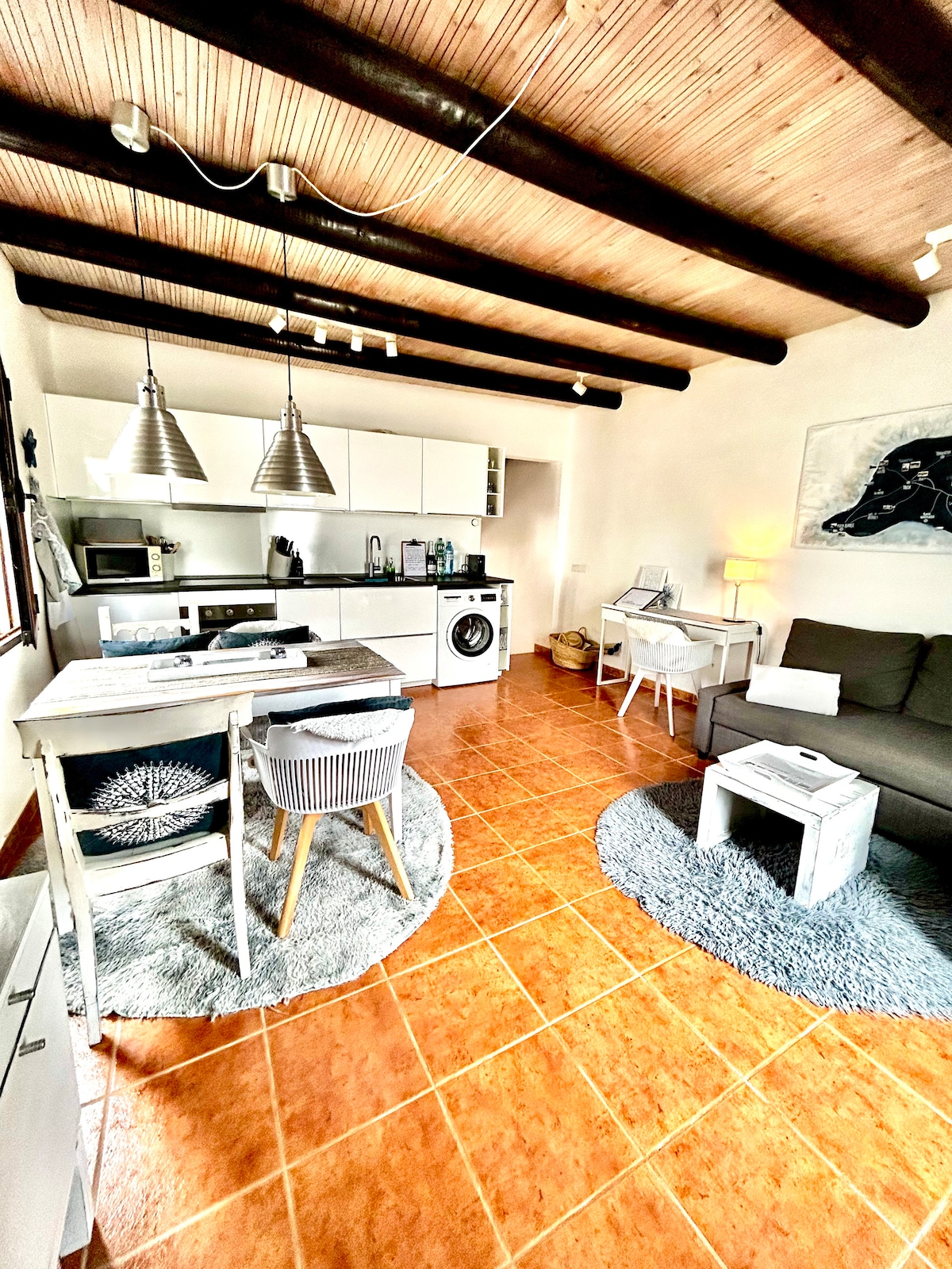 Alójate en un encantador oasis en Nazaret, deslizándote sobre los volcanes de Lanzarote. Disfruta de sensacionales puestas de sol y vistas fascinantes al jardín. Relájate en tu apartamento moderno canario con una terraza privada y una parrilla eléctrica Weber. Acogedor dormitorio(cama 140x200), baño luminoso separado con ducha, cocina perfectamente equipada, lavadora, amplia sala de estar con TV (Amazon Prime,Netflix), red de fibra óptica,tamaño:50 metros cuadrados , altura del techo: 2,60 m