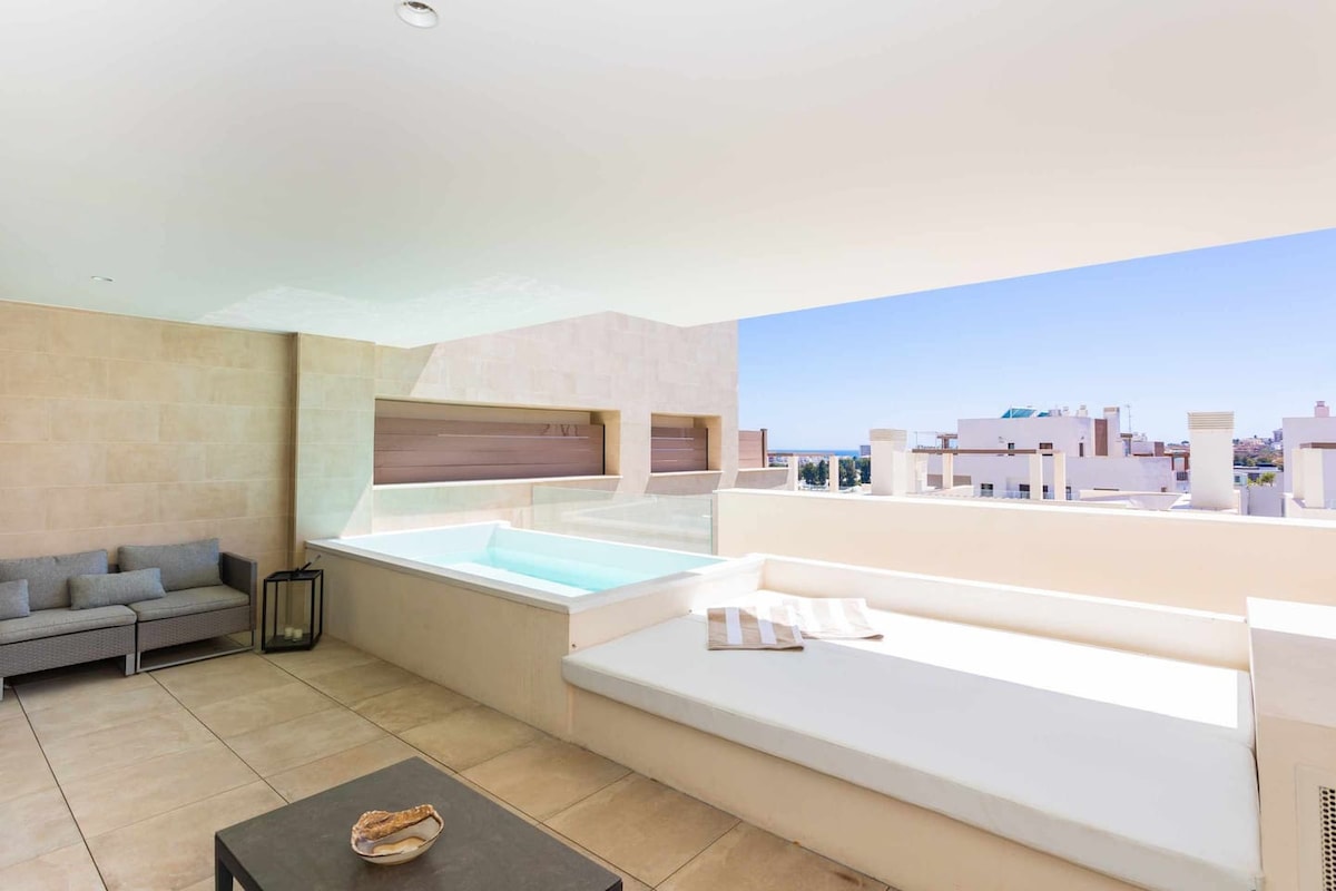 Descubre el lujo en este ático en Marbella, perfecto para unas vacaciones exclusivas. Ofrece 3 habitaciones, 2 baños, amplia terraza con comedor y vistas al mar. En el ático, disfruta de una terraza privada con piscina climatizada y vistas espectaculares. Además, la comunidad cuenta con 3 piscinas exteriores, una piscina interior climatizada, sauna y gimnasio, ideales para relajarte y disfrutar al máximo. Vive el confort, el estilo y las mejores vistas del Mediterráneo en un entorno de ensueño