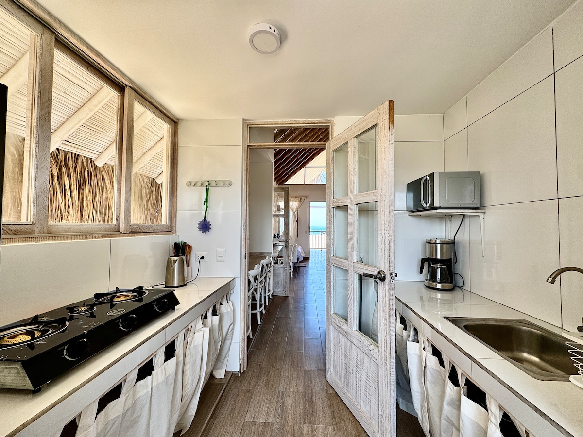 Somos una casa nueva!! ubicados en segunda fila en Las zona de Las Pocitas, Mancora bajo el concepto de barefoot luxury. La casa tiene un dormitorio con una cama king en el primer piso y un altillo con dos camas de plaza y media, baño con ducha al aire libre, cocina, piscina, terraza, area de fogata y area de hamacas. Contamos con una salida privada a la playa a 300 metros de distancia. Somos pet friendly y en la propiedad también vive una gatita llamada tigrita.