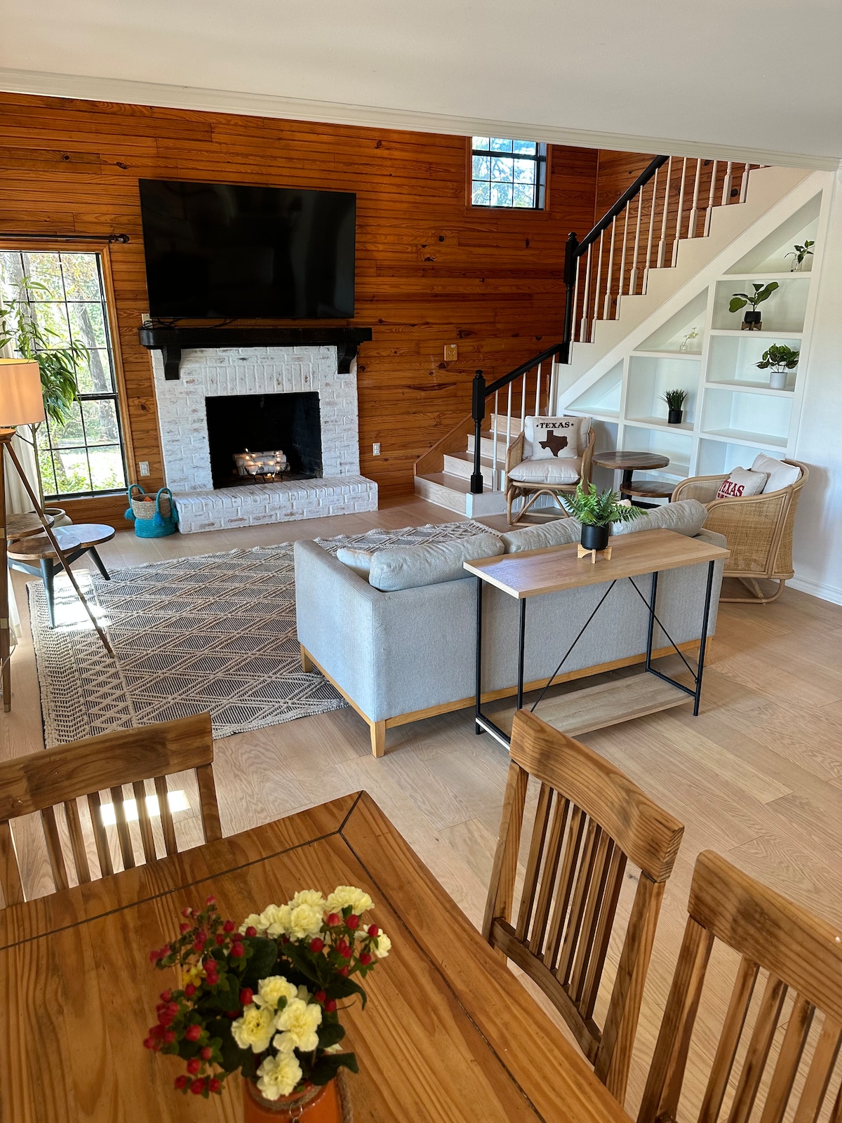 Escápate a una acogedora cabaña de 3,6 acres en el sereno Piney Woods, a pocos minutos de la diversión y la relajación. Ubicado a 8 minutos del lago Sam Rayburn y a 6 minutos del Rayburn Resort, disfruta de paseos en bote, pesca, golf y restaurantes cercanos. La cabaña cuenta con un dormitorio principal privado con una cama completa y un loft con un colchón inflable tamaño queen, ropa de cama incluida. Wifi gratuito, cocina y baño surtidos, lavadora/secadora, chimenea de leña, fogata, 3,6 acres, ¡se admiten mascotas!