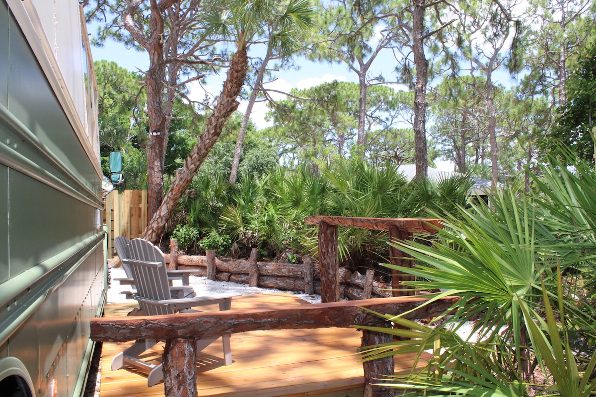 ¡Te damos la bienvenida al Beach Bus! Embárcate en una aventura única donde la nostalgia de los recuerdos del patio de la escuela se encuentra con la tranquilidad del encanto costero de Florida. Nuestro autobús escolar Thomas 2007, convertido con mucho cariño, ofrece ahora una escapada serena entre las palmeras y la exuberante vegetación de la hermosa costa del golfo de Florida. Pero no te detengas ahí... ¡estás a solo unos minutos de las mejores playas que el golfo tiene para ofrecer! Haz que sea memorable, hazlo ⛱️ Beach Bus 🏝