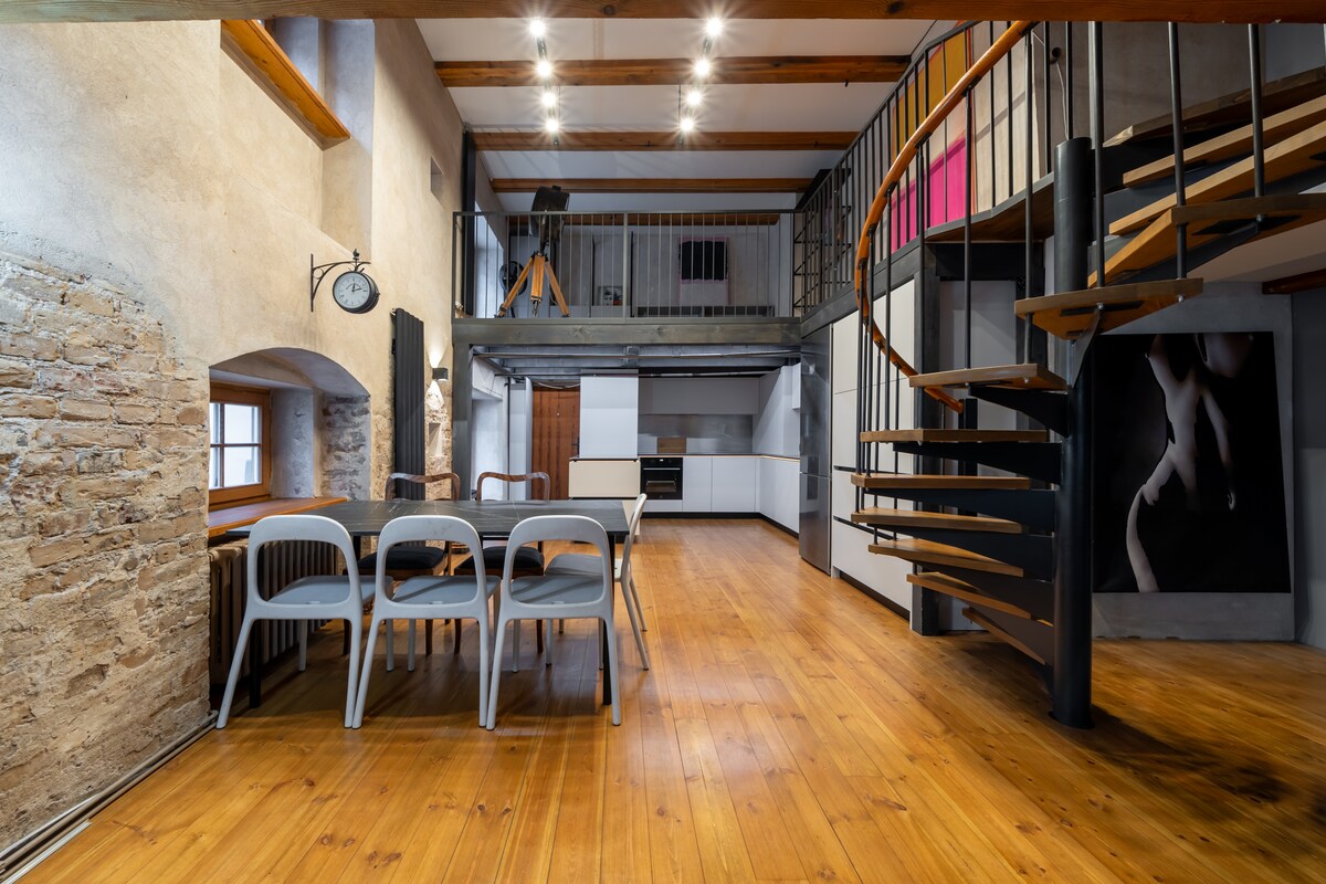 Loft Spirit en el centro de Riga, cerca de muchas cafeterías y restaurantes y a poca distancia de la antigua Riga. Ambiente muy acogedor, ladrillo, madera y estructura metálica para una decoración vintage. Durante los días soleados se puede disfrutar de la terraza.