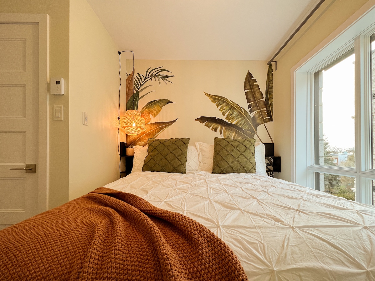 ¡Disfruta de tu estancia en el centro de la ciudad! ¡Nuevo TDC 2 de lujo en el centro con acceso directo al Bell Center! ¡Disfruta de la comodidad de nuestro apartamento de un dormitorio totalmente amueblado y equipado con balcón privado propio! Tu estancia incluye acceso a sauna, piscina, gimnasio, salón panorámico, sala de juegos, salón y terraza con múltiples barbacoas. Aparcamiento subterráneo gratuito, con el metro a pocos minutos. Sin salir, la ciudad es tuya para explorar. Además, relájate con Netflix de cortesía para disfrutar de una estancia perfecta.