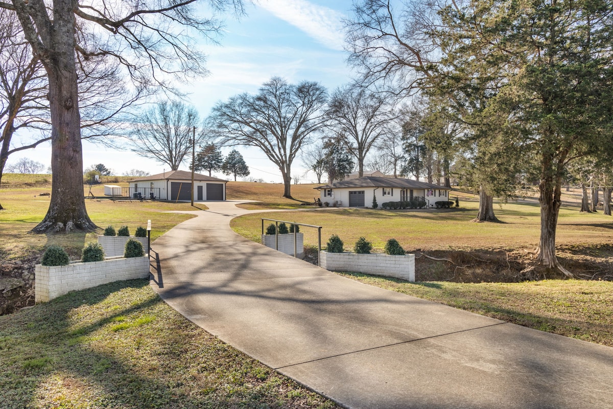 Enjoy this luxury creekside farm stay on Shegog Creek in Muscle Shoals, perfect for families or groups. Sleeps 8 in 3 stunning bedrooms with 2 baths. Relax or play with pickleball, basketball, putting green, ping pong/pool table, and PS5, plus a cozy outdoor firepit. Cook, entertain, or unwind in comfort—designed as a true retreat for fun, connection, and serene creekside luxury.