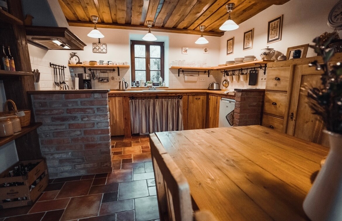 Nuestra casa se encuentra en un lugar semi-aislado en el bosque cerca del río Stropnice. Aunque a primera vista no lo parezca, hay vecinos en los alrededores, pero no se pueden ver desde la cabaña. Disfrute de sentarse junto a la chimenea con un libro y una taza de té o desayuno en la terraza. No hay wifi en la cabaña, así que disfrute del tiempo que pase con los demás.