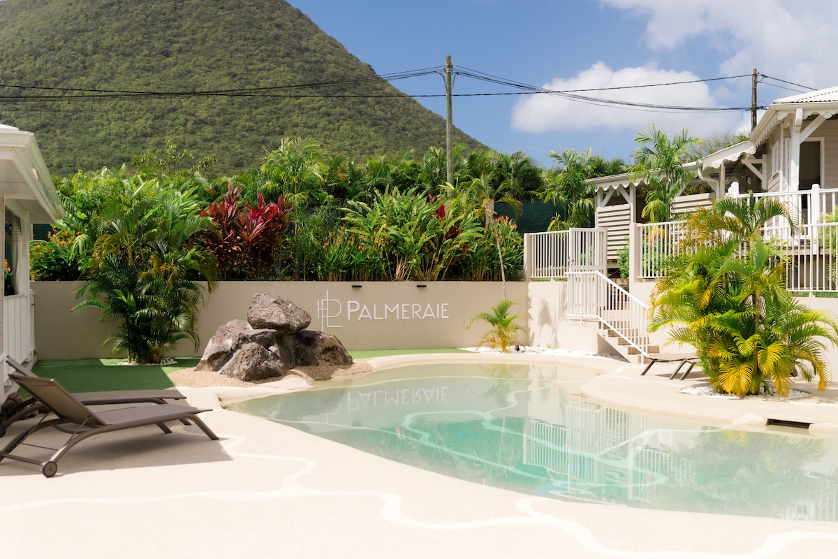 (Villa de 2025 de 84m2 con terraza de 46 m2 y estanque de ponche (pequeña piscina 3x2 con su banco, integrado para admirar la roca del Diamante, )3 dormitorios con aire acondicionado mosquiteros en las ventanas, espacioso, en la habitación una vista de Sainte-Anne a la dama acostada frente a la roca del Diamante. en una residencia segura del Marine Hotel tiene su propia piscina privada las habitaciones tienen aire acondicionado Internet Starlink, hay todo el equipo para pasar una agradable estadía