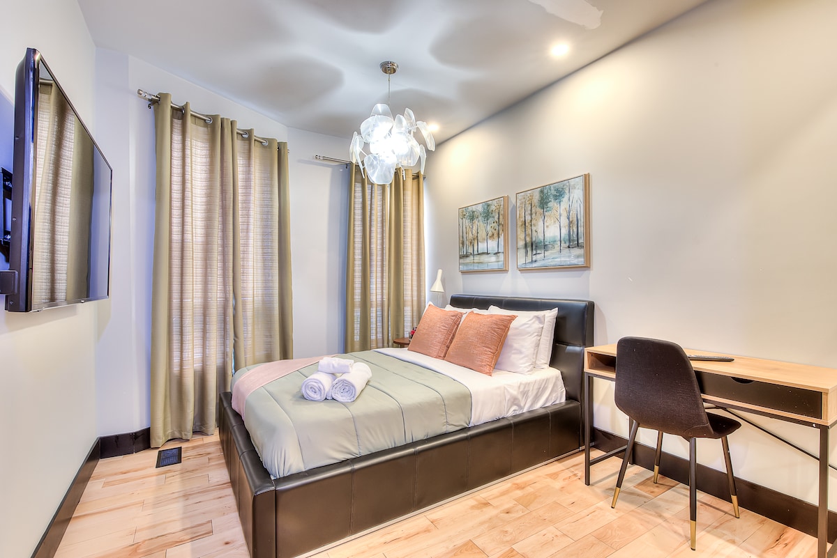 Imagina un estudio compacto y cuidado al detalle en el corazón del centro de Montreal. Su simplicidad es su encanto: las paredes blancas inmaculadas crean un lienzo para que la personalidad de la habitación brille. Las pertenencias se guardan en soluciones de almacenamiento inteligentes, lo que garantiza que cada centímetro se utilice de manera eficiente. Los toques únicos añaden carácter y calidez al espacio. Con su limpieza, diseño cuidado y estilo individual, este estudio ofrece un refugio de tranquilidad en medio del ajetreo y el bullicio urbanos.