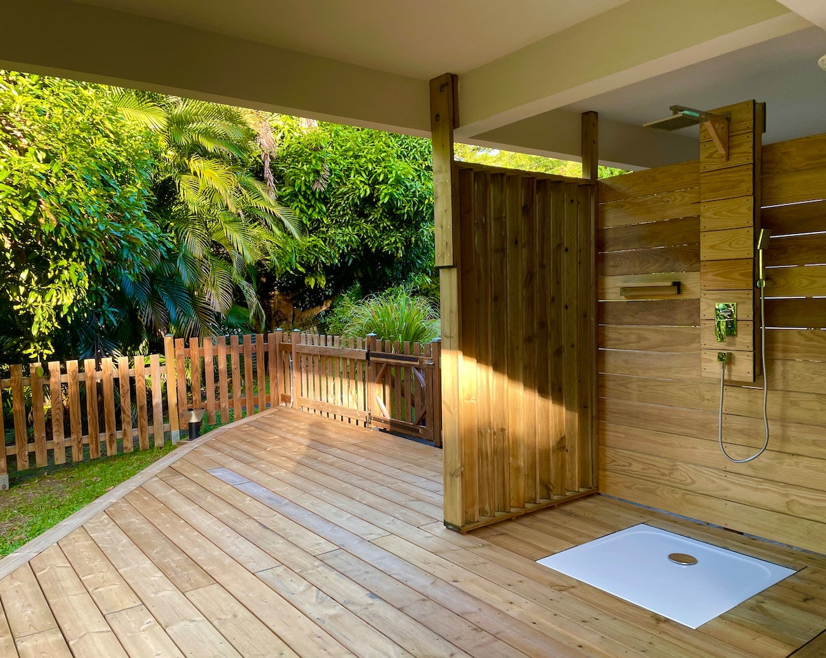 Le Ti Palmier Rouge fue diseñado para los amantes. Construido en medio de un huerto frente a los islotes de Le François, este espacio de 40 m2 está dedicado a la paz y el amor. Cocoteros, guayabos, acerolas, aguacates, mangos y carambolas rodean el chalet de madera. La pequeña cocina está en la terraza, para que puedas aprovechar al máximo las vistas. La piscina exterior de 2x2 m está hecha de piedra de río y tiene una sensación única. El dormitorio bellamente decorado tiene aire acondicionado. Ducha italiana, mini vestidor, cocina exterior.
