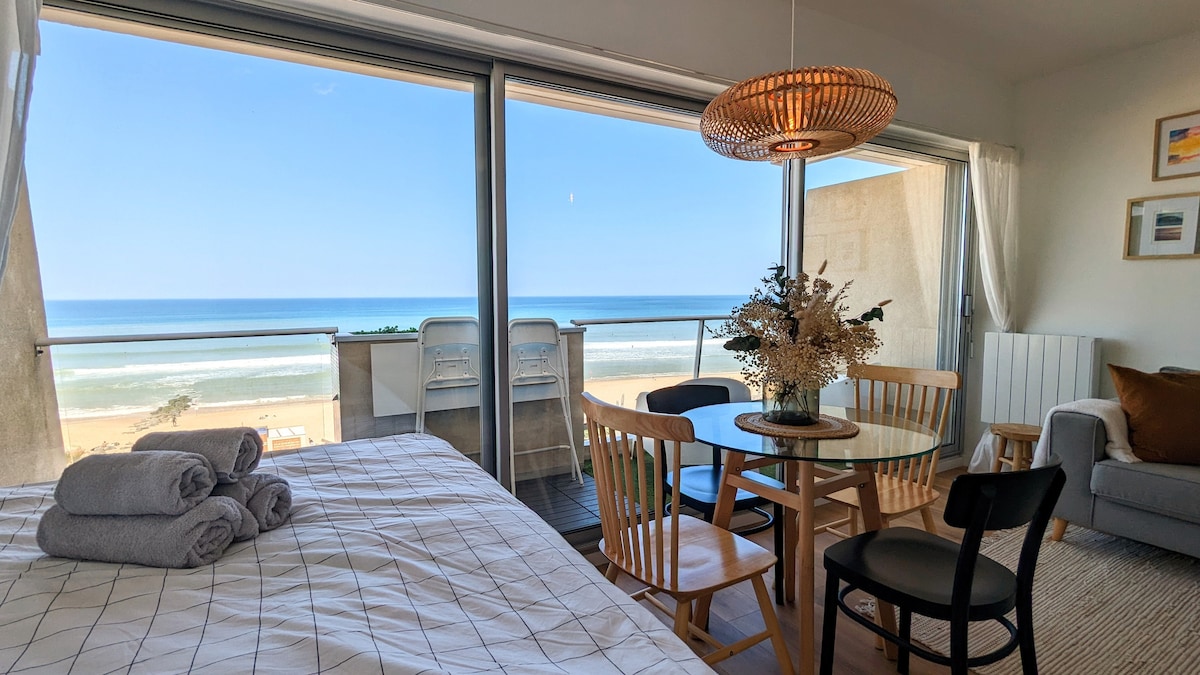 Apartamento de playa con vistas completas al mar y a la puesta de sol.
