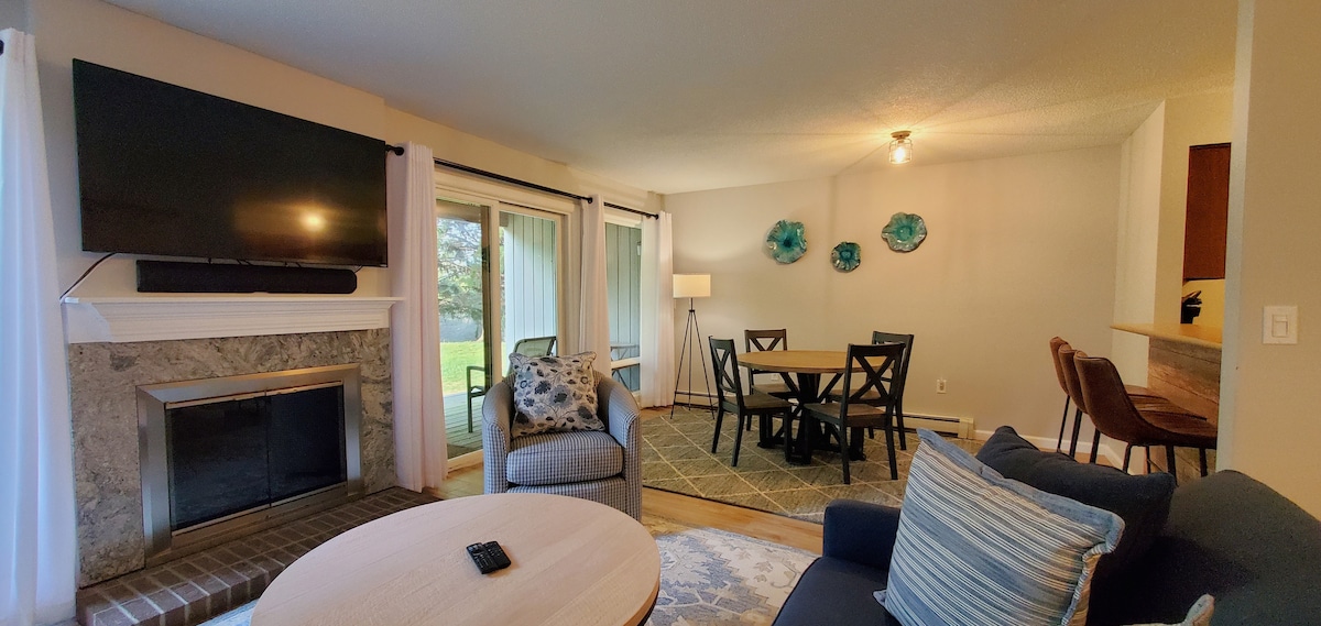 Este hermoso condominio en la planta baja es fantástico. Las puertas corredizas de vidrio conducen a la terraza y a los terrenos, si lo deseas. Te damos la bienvenida a Winter Wonderland. ¡Tenemos la nieve! La ubicación lo es todo. El esquí y el tubing están a la vuelta de la esquina. Traverse City está al final de la carretera, y muy cerca del Festival Ecuestre de los Grandes Lagos, Grand Traverse Resort & Casino, el sendero TART para ciclismo y senderismo, kayak, navegación y pesca. No olvides los festivales. Recuerdos.