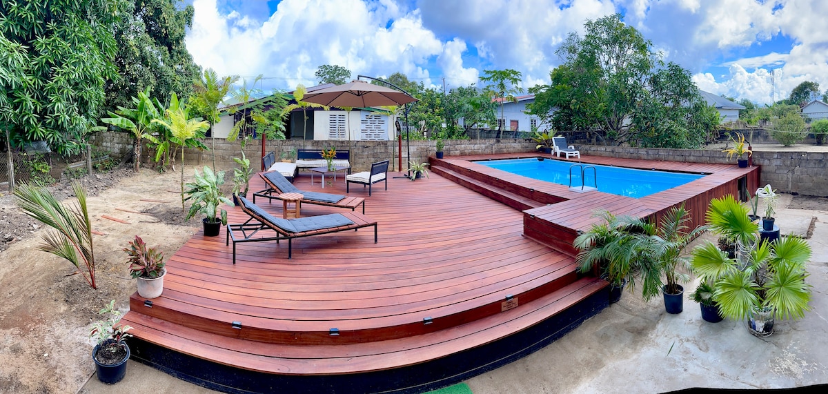 Disfruta de la comodidad y la tranquilidad en esta elegante casa independiente, idealmente ubicada en el barrio de Morgenstond, Paramaribo-Noord. La casa es espaciosa y está completamente amueblada, perfecta para familias, viajeros de negocios o un grupo de hasta 5 personas que quieran relajarse en un ambiente hogareño y lujoso. Con comodidades modernas y una piscina privada, este es el lugar ideal para relajarse por completo.