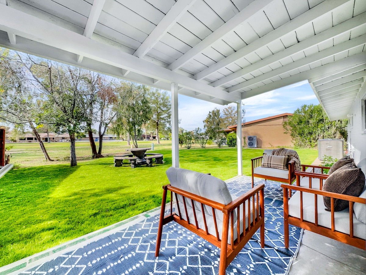 Olvídate de las preocupaciones en este gran alojamiento de 1288 pies cuadrados: ¡es un oasis de tranquilidad! Siéntate en el patio cubierto o relájate junto a la piscina con vistas al Arizona Golf Resort and Event Center en la zona de Golden Hills de Mesa. Nuestro apartamento es una unidad de esquina de nivel inferior. Debido a los requisitos de la Asociación de Propietarios, no se admiten menores de 18 años. Si tienes entre 19 y 21 años, debes estar acompañado por un progenitor o tutor legal durante todo el tiempo de la reserva.