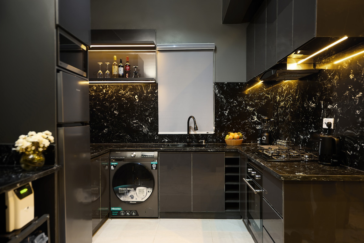 Bienvenido a tu próxima escapada: un impresionante refugio de temática oscura donde la elegancia se combina con la comodidad moderna. Este lujoso apartamento de 2 dormitorios te envuelve en un ambiente elegante y sofisticado, perfecto para aquellos que anhelan una mezcla de estilo y tranquilidad, ¡con servicios de alta gama que convierten tu estancia en una experiencia de 5 estrellas y todo al alcance de la mano!