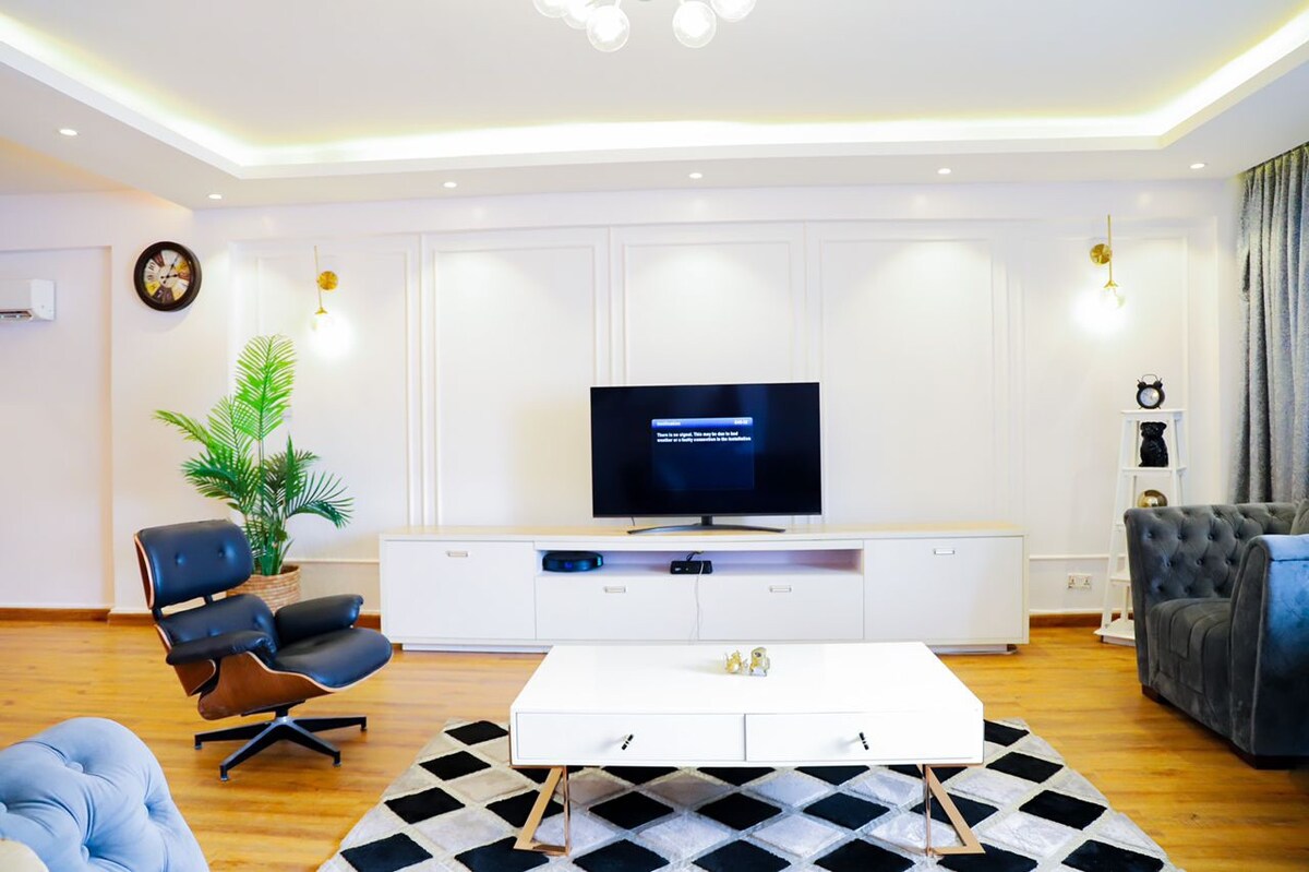 Disfruta de una experiencia elegante en esta finca céntrica cerrada y bien asegurada, con personal de seguridad las 24 horas, suministro de energía las 24 horas, aire acondicionado, ascensor funcional, primer piso, DSTV, Netflix, Internet de alta velocidad, piscina, sala de estar al aire libre, supermercado de la finca, cerradura inteligente, balcón con una bonita vista, limpieza regular, cocina bien equipada, espacio de trabajo y mucho más.