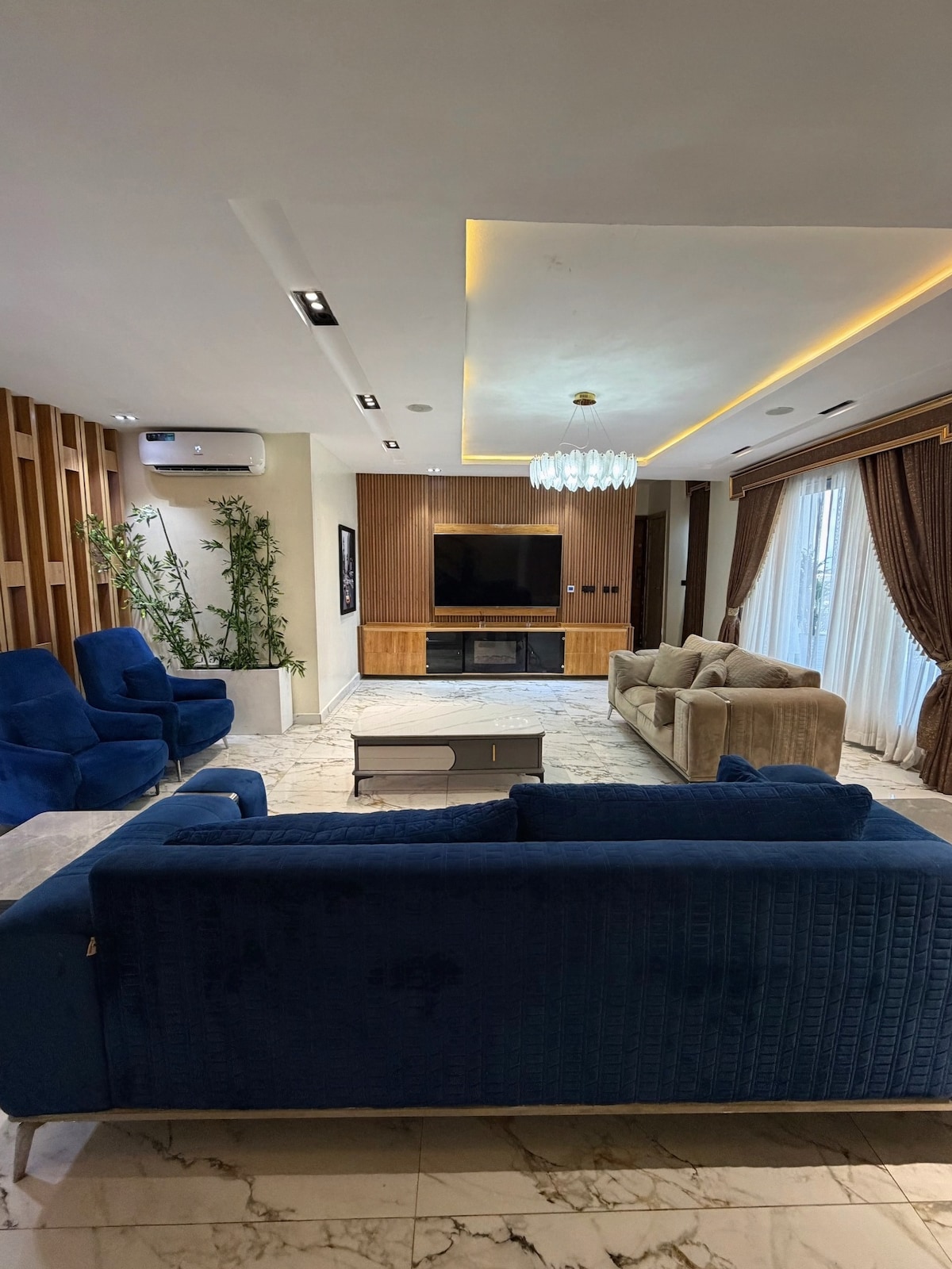 Este elegante espacio ubicado en Ikoyi cuenta con una acogedora sala de estar, una cocina totalmente equipada, 3 dormitorios en suite con camas tamaño king, un baño para visitantes, un espacio de trabajo dedicado con conexión Wi-Fi rápida, una cafetería en el lugar y acceso a nuestro salón ejecutivo. Perfecto para familias, viajeros de negocios o para cualquiera que busque comodidad y conveniencia en la ciudad. El departamento ofrece fácil acceso a actividades al aire libre, restaurantes elegantes y atracciones populares, lo que lo convierte en una excelente base para explorar Lagos.