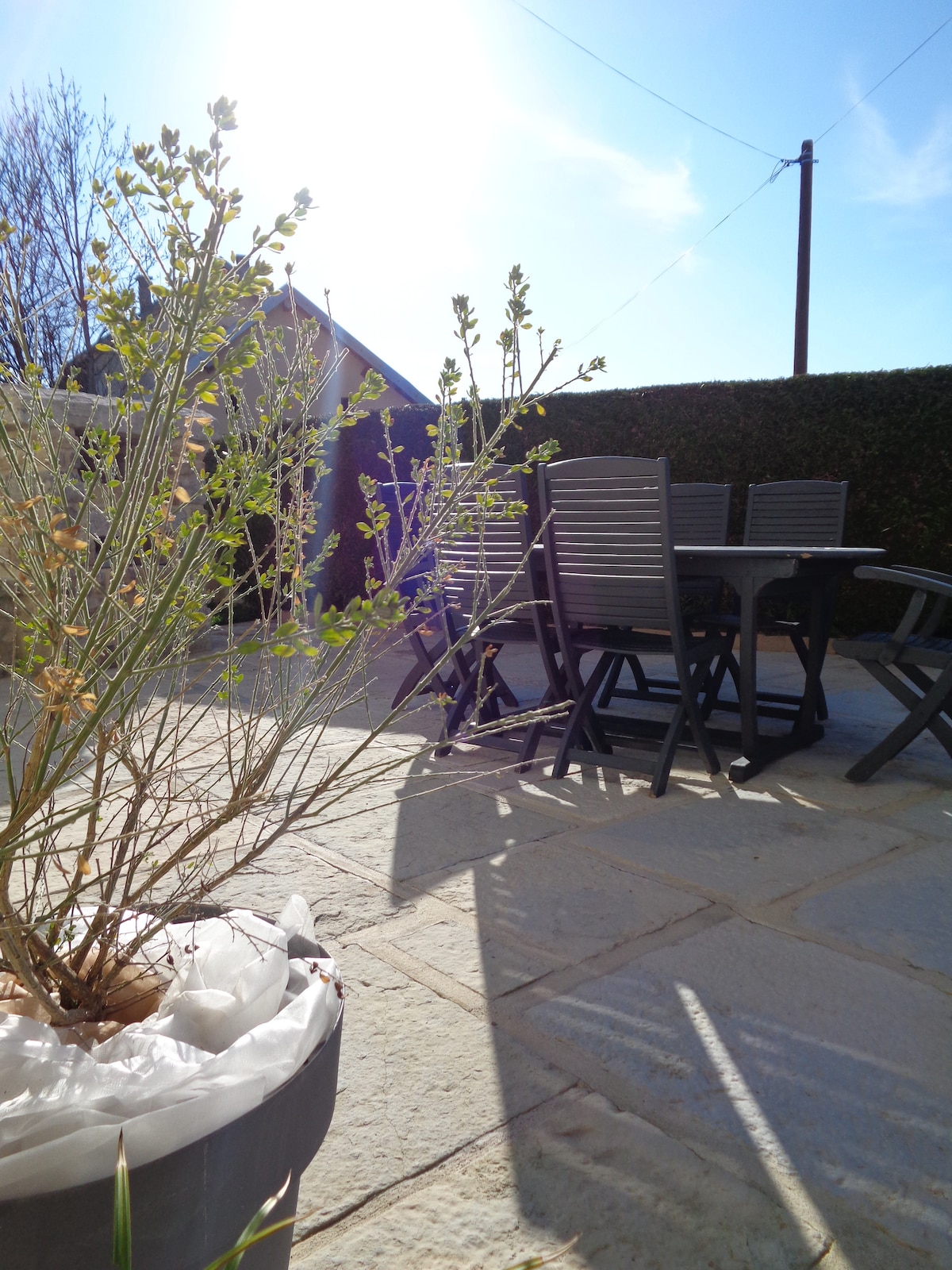 Apartamento independiente acondicionado en una antigua granja restaurada con pequeña terraza sombreada y acceso al jardín en un auténtico pueblo francés. Ideal para parejas o parejas con niños y no recomendado para un grupo de adultos (falta de intimidad)