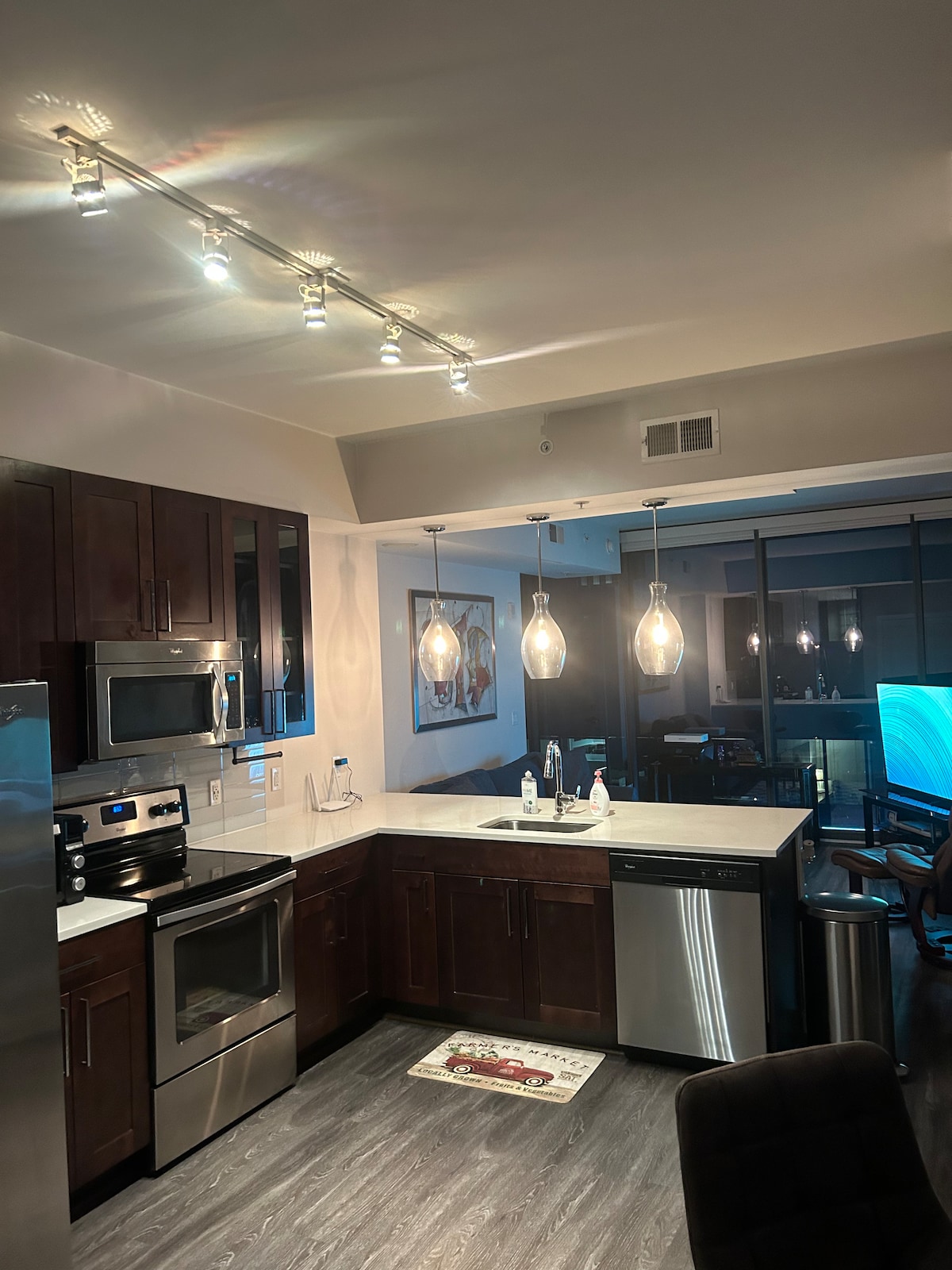 Cocina del chef: cama tamaño king, cama tamaño queen y litera, TV de 70 pulgadas