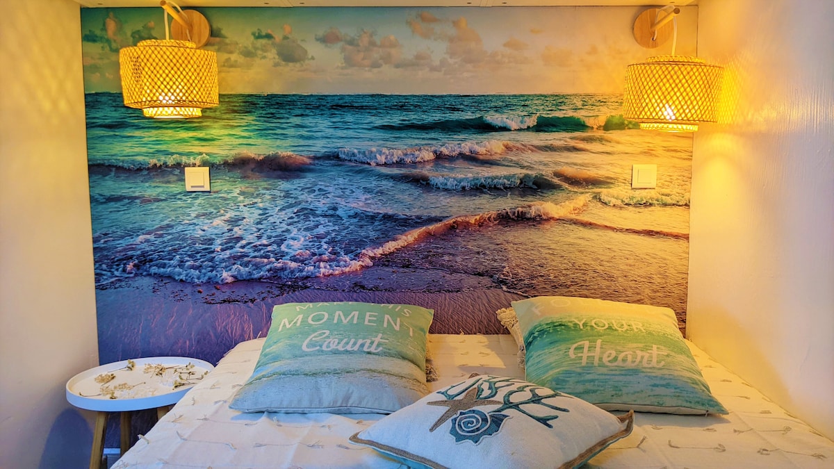 Magnífico apartamento de 2 habitaciones totalmente renovado con las normas y comodidades actuales por la agencia de Diseño y Arquitectura de Interiores - Loft 75 y que cuenta con la clasificación de Alojamiento Amueblado de Turismo de 4 estrellas. ¡Se ha elegido un espíritu «boho» para la decoración refinada para encontrarle en un ambiente exótico garantizado! Vistas a una de las zonas de la Marina. El alojamiento se encuentra en un puerto deportivo privado y seguro con guarda 24/7 para controlar el acceso y su seguridad.