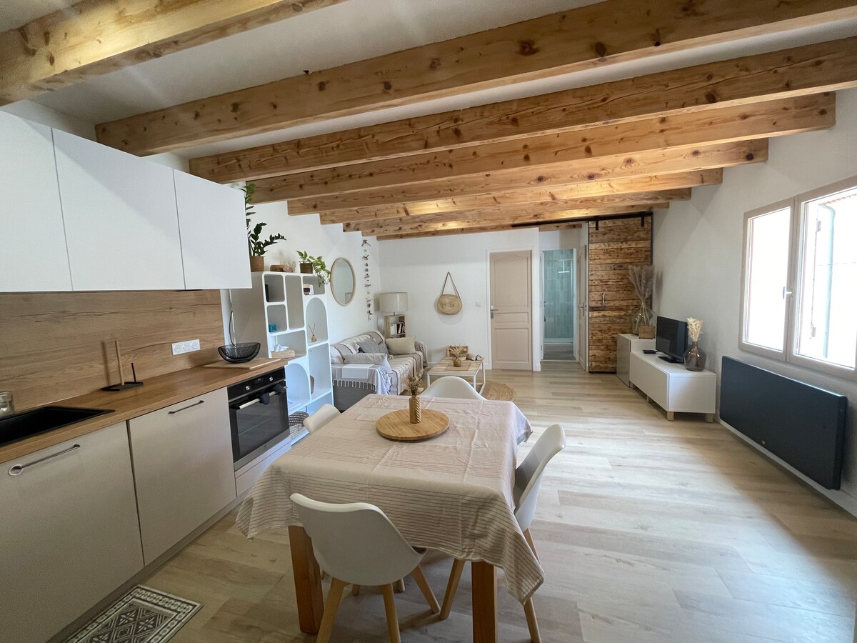 Casa reformada en 2024, en el corazón del encantador pueblo de Leucate, a 1 min de la plaza del pueblo, sus bares y restaurantes, en una calle tranquila contigua a la meseta de Leucate propicia para paseos y caminatas. Planta baja: la entrada y el garaje de 40 m2 accesible desde el exterior. En la planta superior: 2 dormitorios con camas de 160 cm x 200 cm, uno de ellos equipado con un rincón para teletrabajar (wifi incluido); El salón / comedor con sofá cama de 140x200 y cocina totalmente equipada.