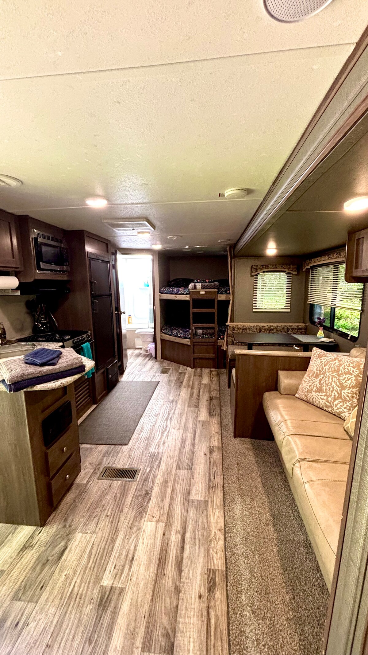 ¡Evita el tráfico al parque, ahorra horas! ¡Estamos a 0,4 millas de la entrada! En verano, los autos se alinean por millas, la espera dura horas. Experimenta la naturaleza de WA en una elegante y cómoda casa rodante 2018 de 30 pies, ubicada en 3 acres de belleza perenne. Con un total de 5 camas (1Q, 4F) puede alojar hasta 8, ¡pero no lo recomendamos para más de 4 adultos! Ya sea que te estés acurrucando en el interior con vino y un juego de mesa, asando o relajándote junto a la fogata bajo un dosel de estrellas, este es el mejor refugio.