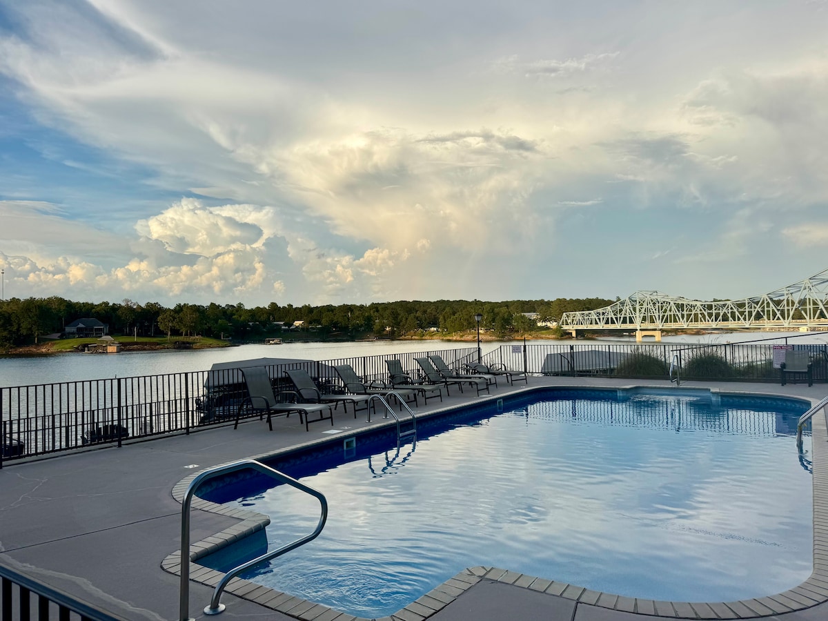 Nuestra acogedora morada ofrece la combinación perfecta de comodidad y aventura para tu escapada. * Unidad en la planta baja con vistas al lago y a la gran piscina. * Zona de barbacoa. * Suite king con baño grande y ducha a ras del suelo. * Atracadero cubierto para barcos y elevador de barcos disponible. * Amplio alojamiento de 3 dormitorios y 2 baños.