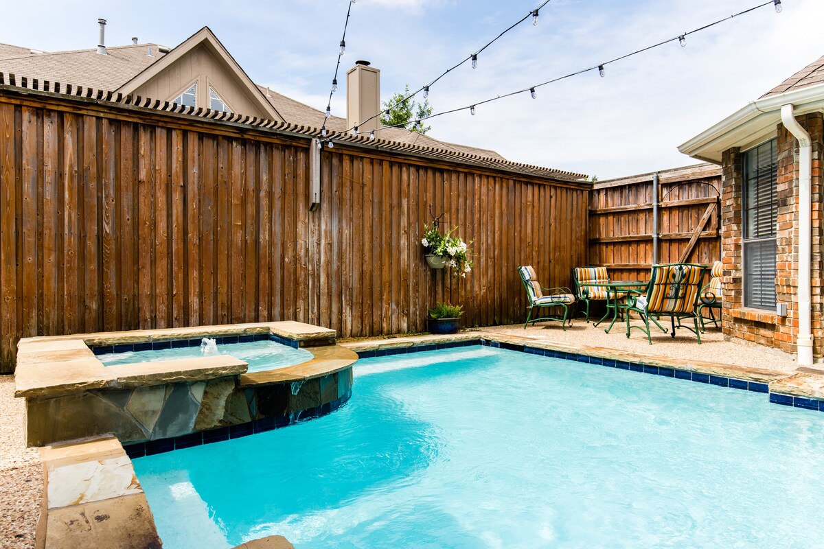 Piscina climatizada y spa únicos cerca de DFW para 10-12 personas