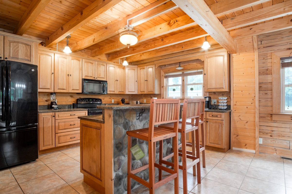 Cabaña rústica de troncos en 11 acres - Capacidad para 24 personas