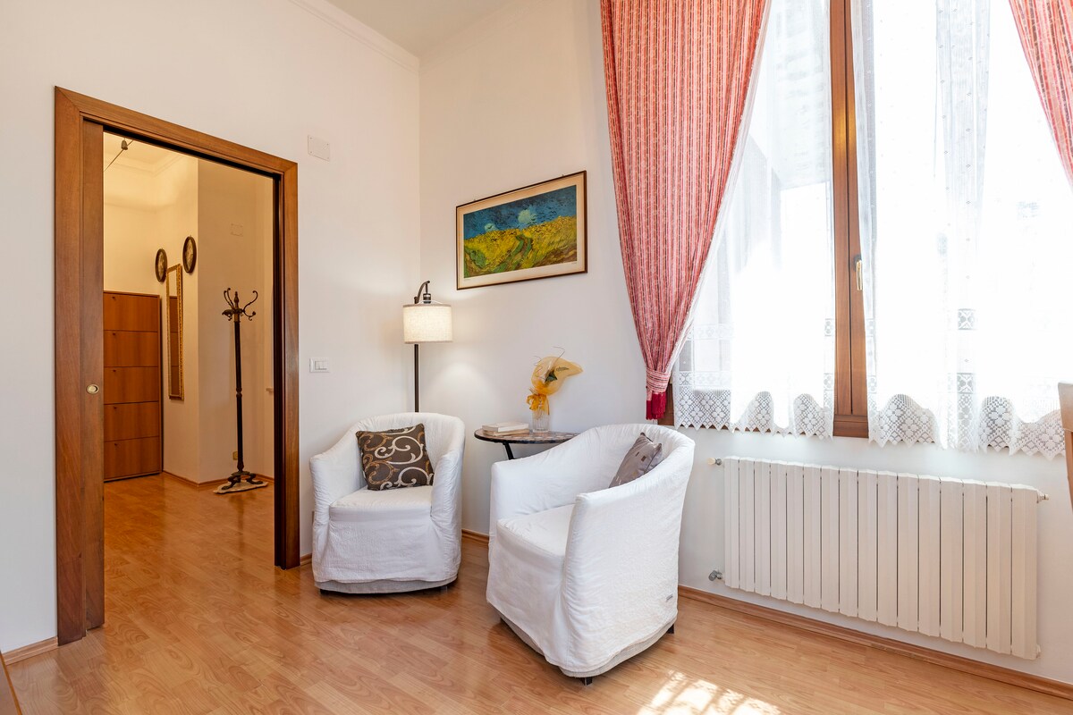 «Il ramo di kaki» es un apartamento muy cómodo de 120 metros cuadrados. Fue la residencia de verano de mis abuelos durante los años 50. El apartamento fue completamente renovado en 2018. Se encuentra en la segunda planta de la casa histórica en la calle principal de Lido, la Gran Viale. La casa conserva los originales y hermosos suelos de terrazo veneciano y, sin embargo, cuenta con todas las comodidades modernas. «Vayas a donde vayas, se convierte en parte de ti de alguna manera» - Anita Desai