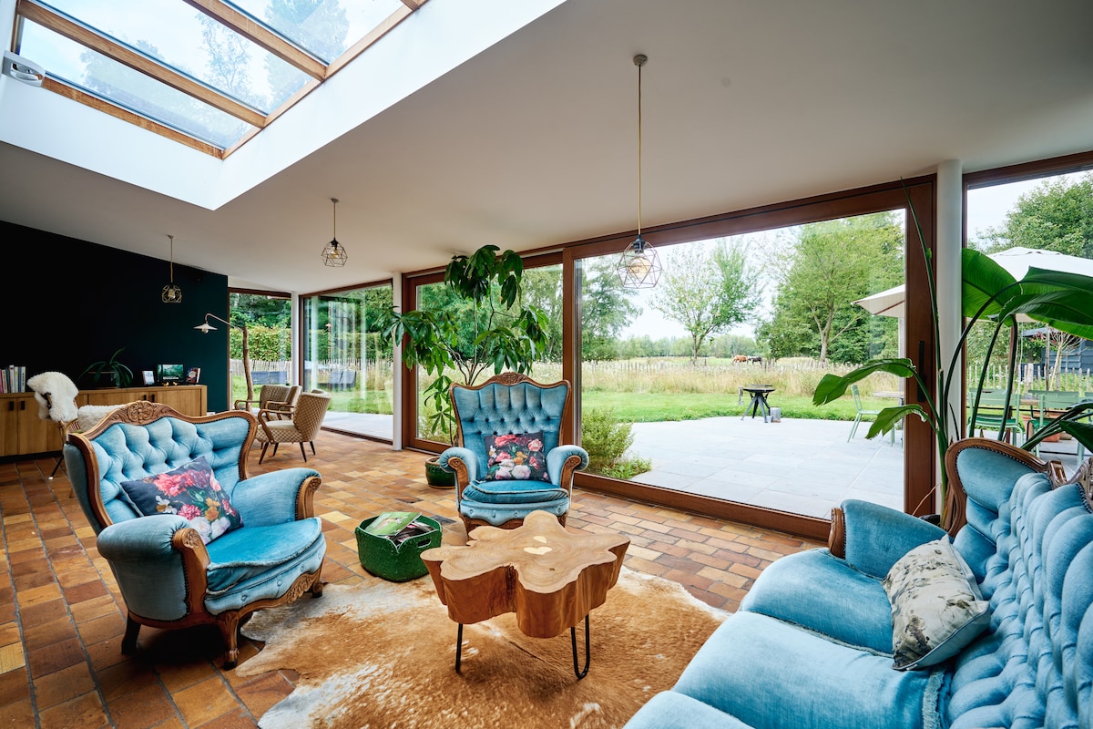 Nuestra casa de vacaciones "WildeWeg" está situada en una zona tranquila y verde, ideal para unas vacaciones relajantes, cerca de las ciudades de Gante y Brujas, así como de los hermosos arroyos y bosques de Meetjesland. Ofrece un alojamiento de lujo para 10 personas. Para el interior, seguimos nuestro corazón y elegimos un interior ecléctico con gran comodidad. El amplio jardín y la terraza ofrecen una hermosa vista de un típico paisaje rural flamenco.